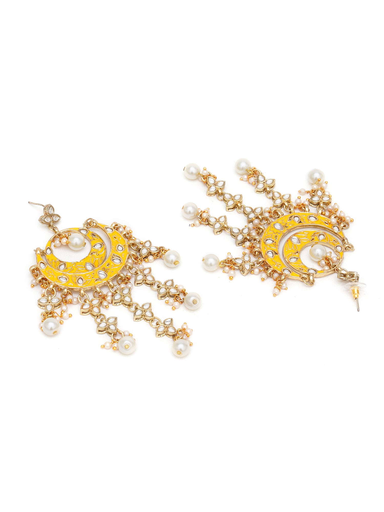 Karatcart Gold Plated Yellow Meena Lotus Shape Kundan Dangler Earrings for Women
