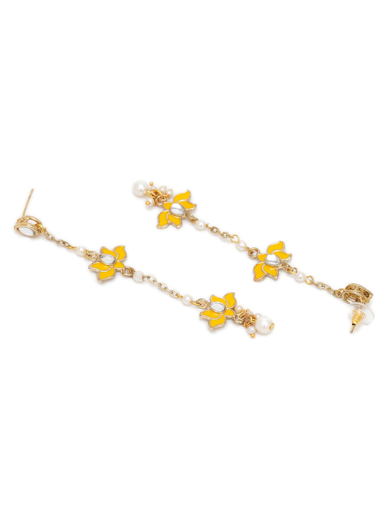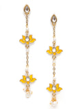 Karatcart Gold Plated Lotus Shape Yellow Kundan Drop Earrings for Women