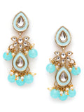 Karatcart Gold Plated Light Blue Meena Kundan Drop Earrings for Women