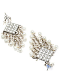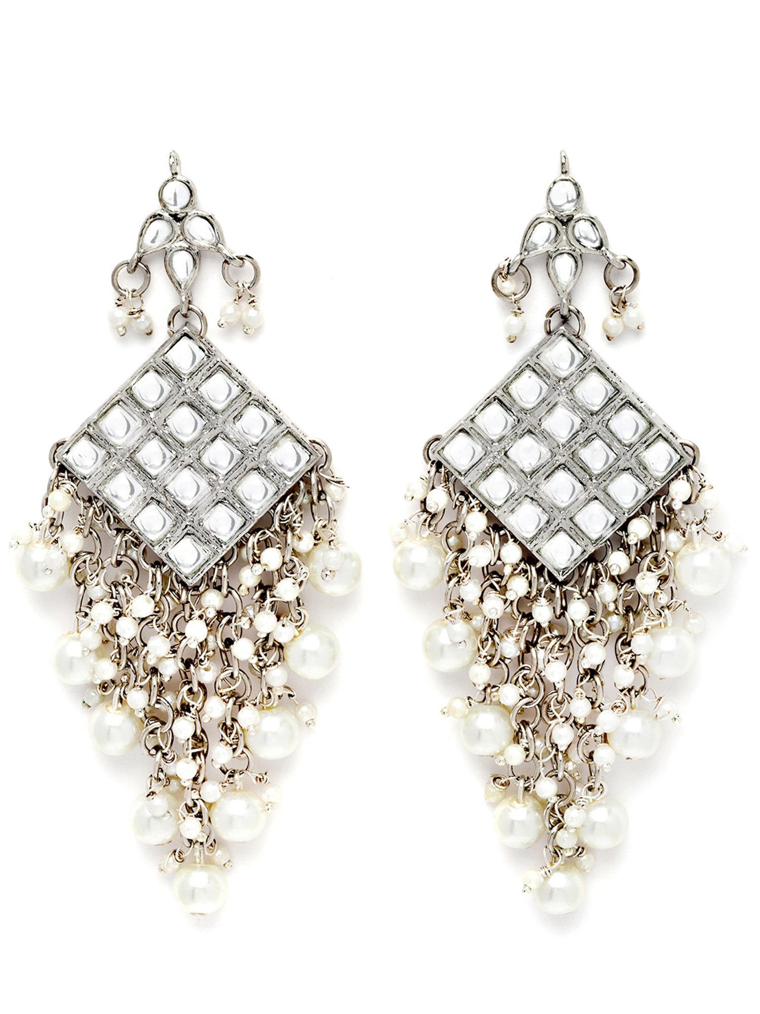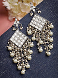 Karatcart Oxidised Silver Diamond Shape Pearl Studded Kundan Dangler Earrings for Women