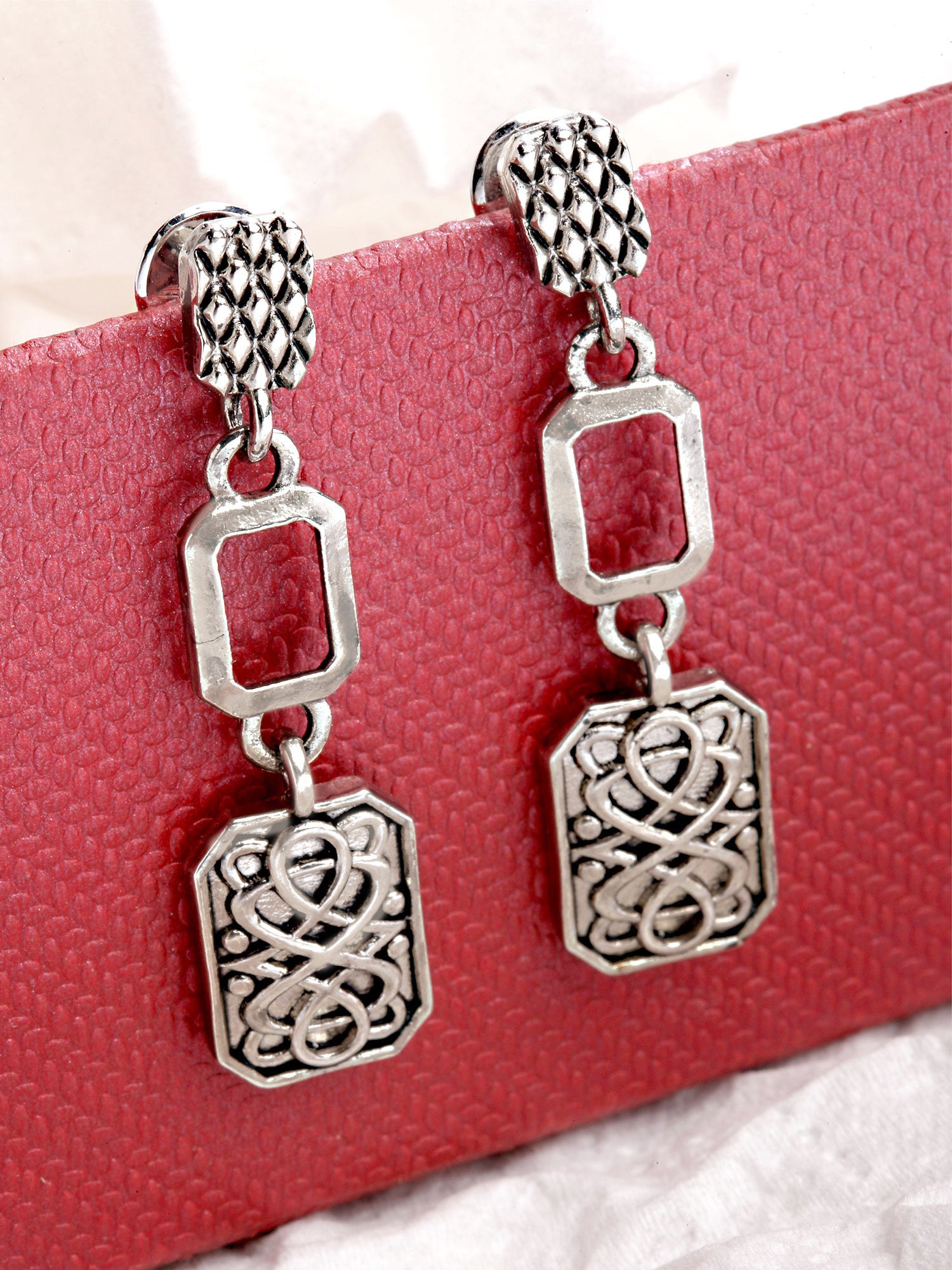 Karatcart Oxidised Silver Celtic Link Drop Earrings for Women