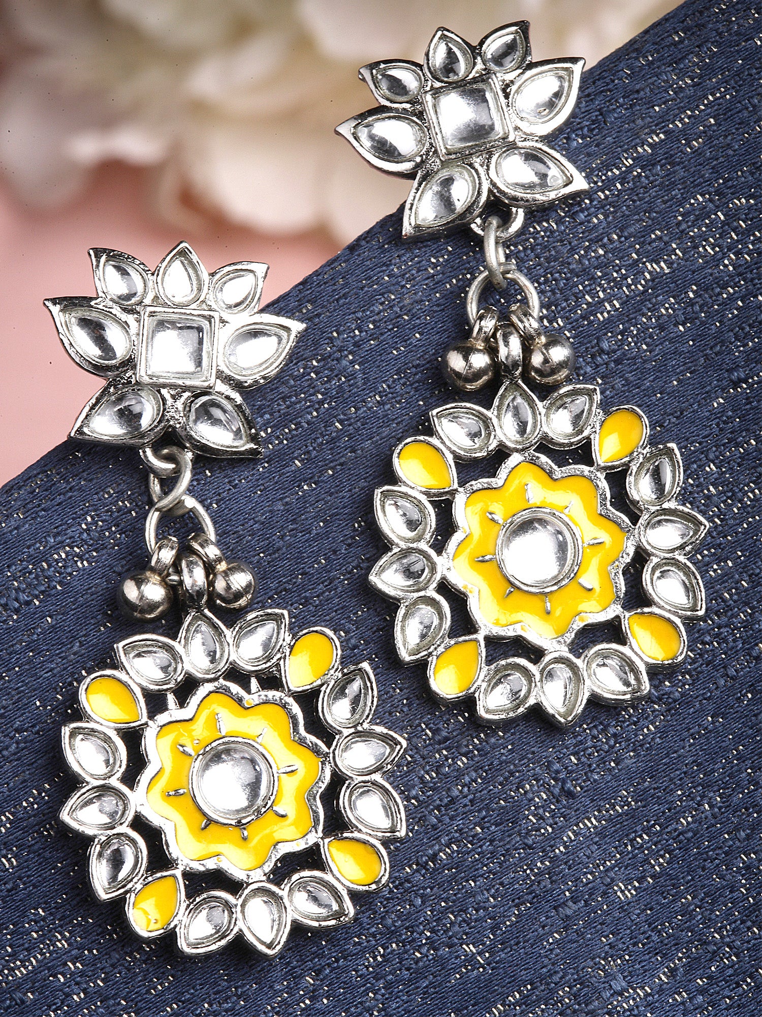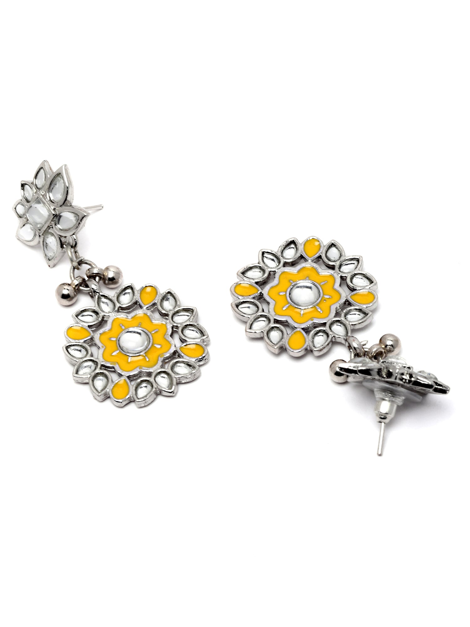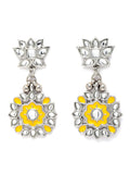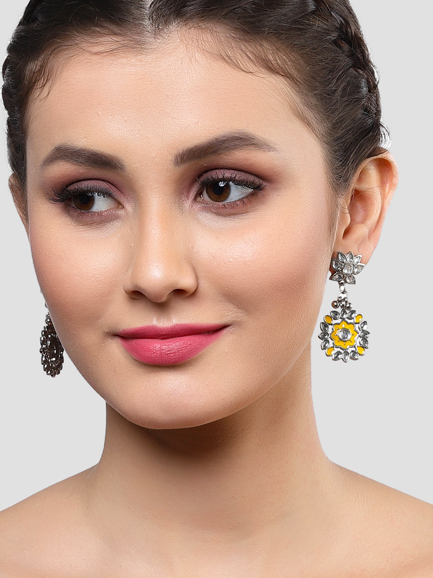 Karatcart Oxidised Silver Yellow Meena Floral Design Kundan Dangler Earrings for Women
