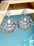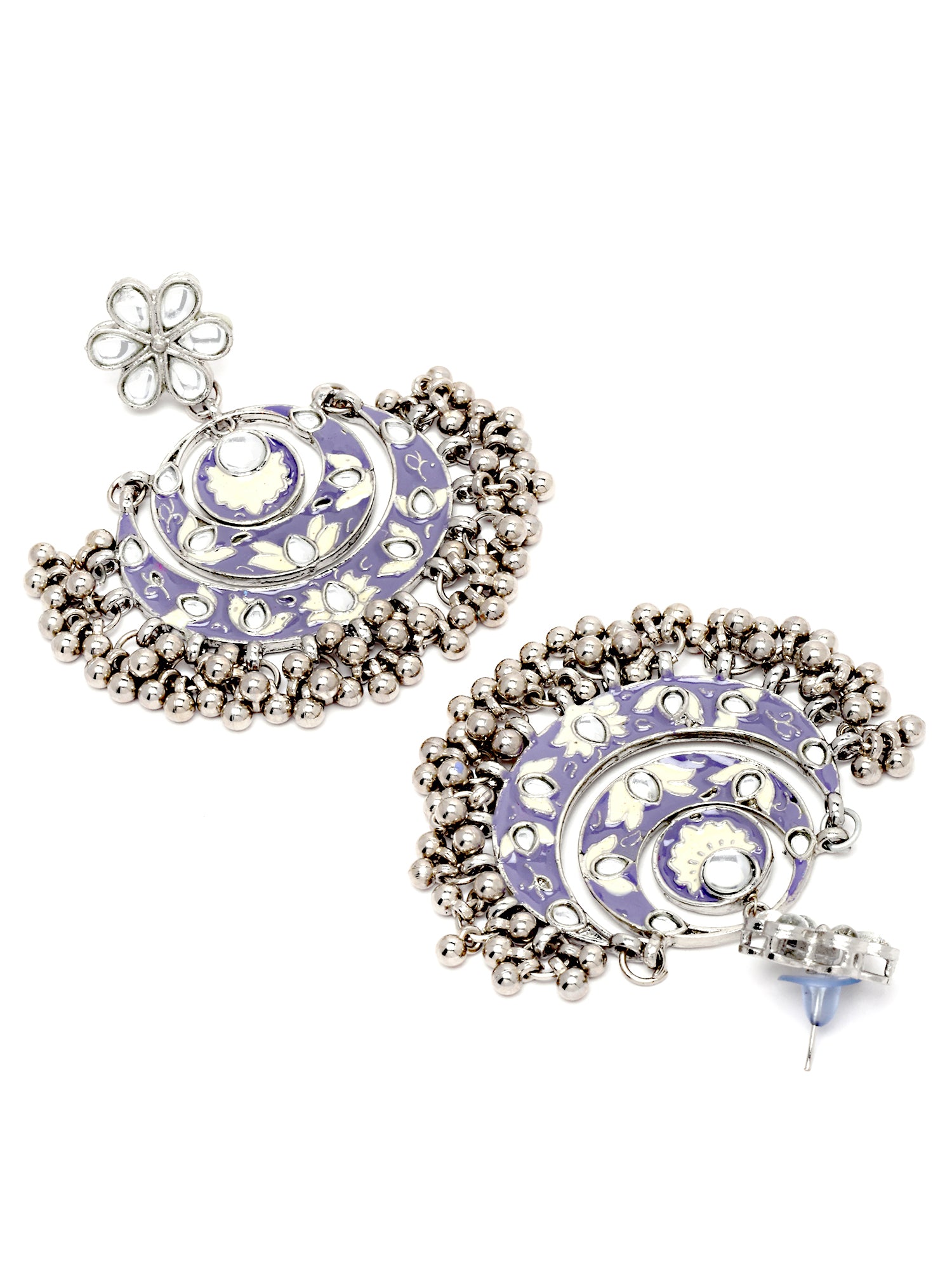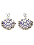 Karatcart Oxidised Silver Violet Meena Silver Ball Studded Kundan Chandbali Earrings for Women