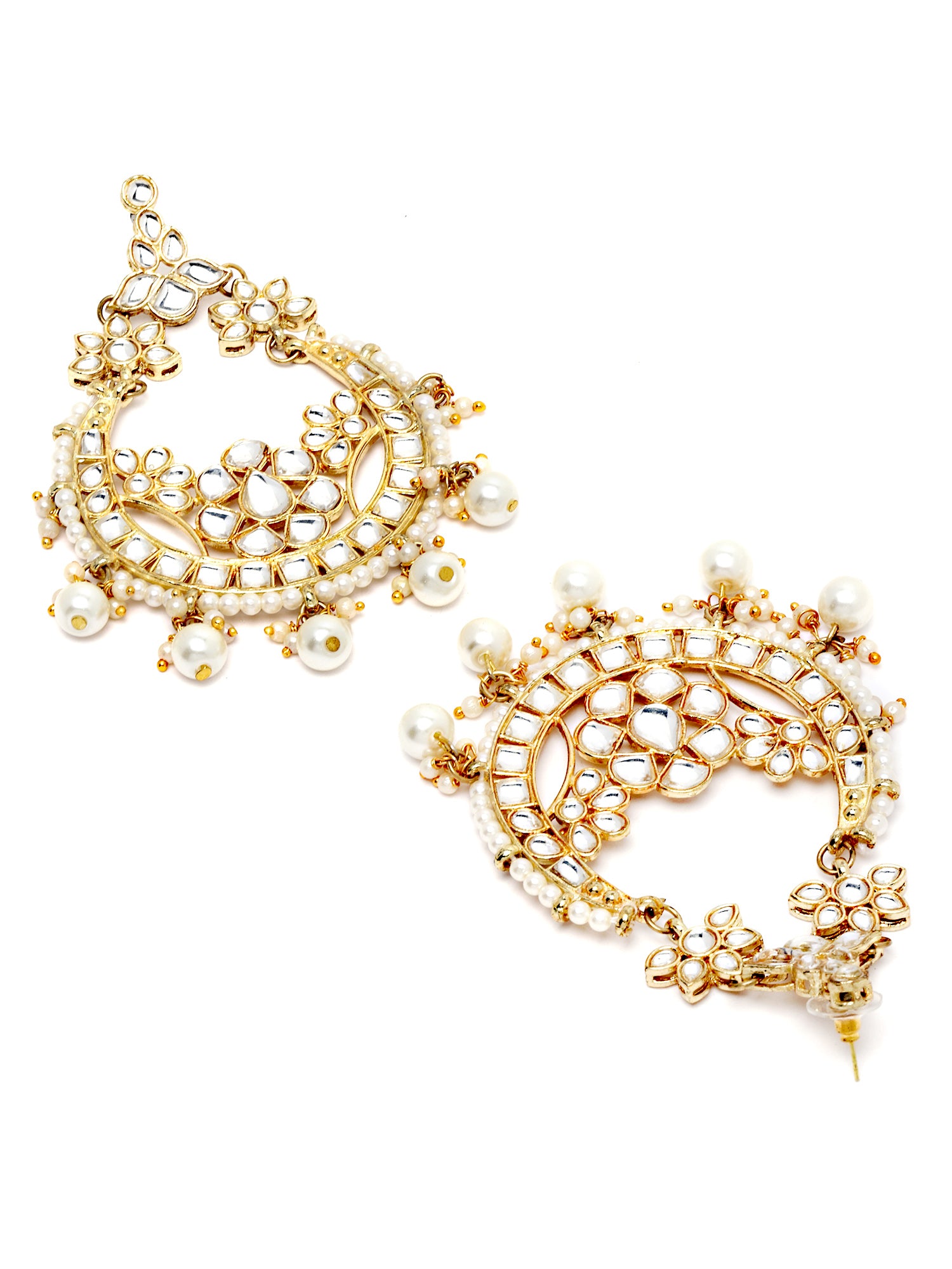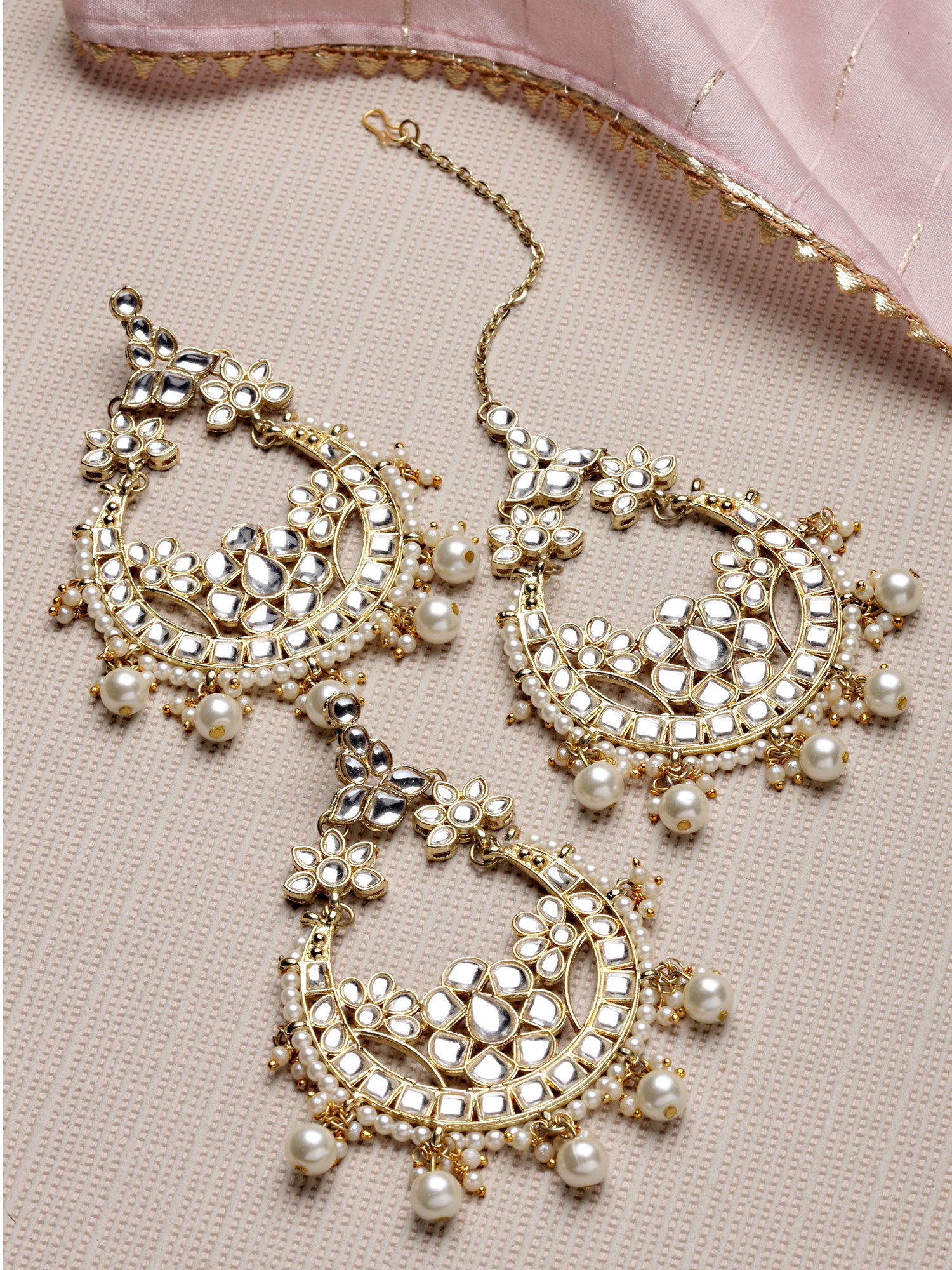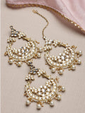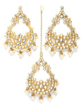 Karatcart Gold Plated Kundan Chandbali Earrings with Maangtikka Set for Women