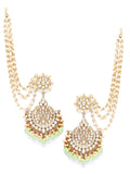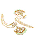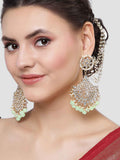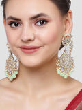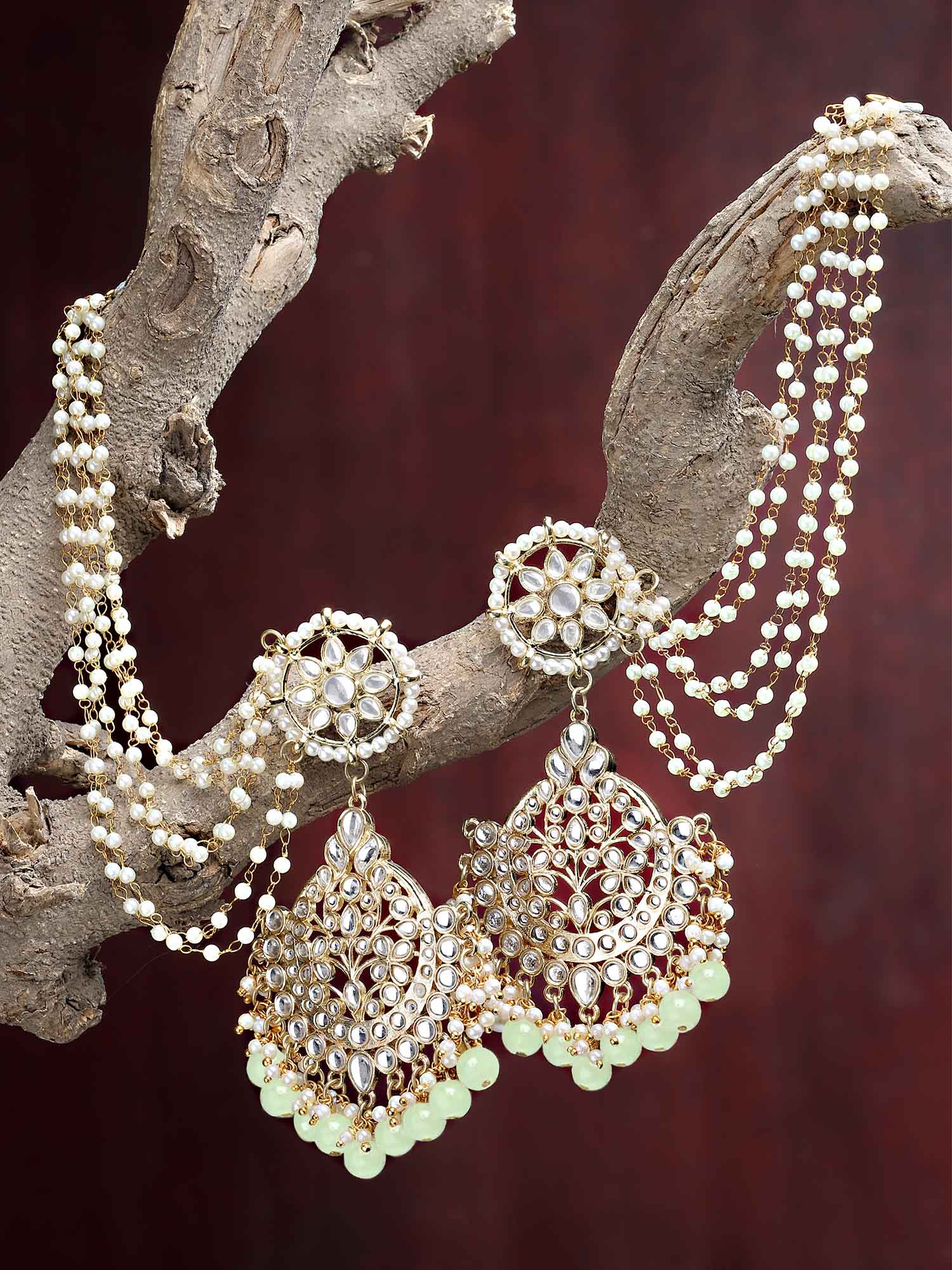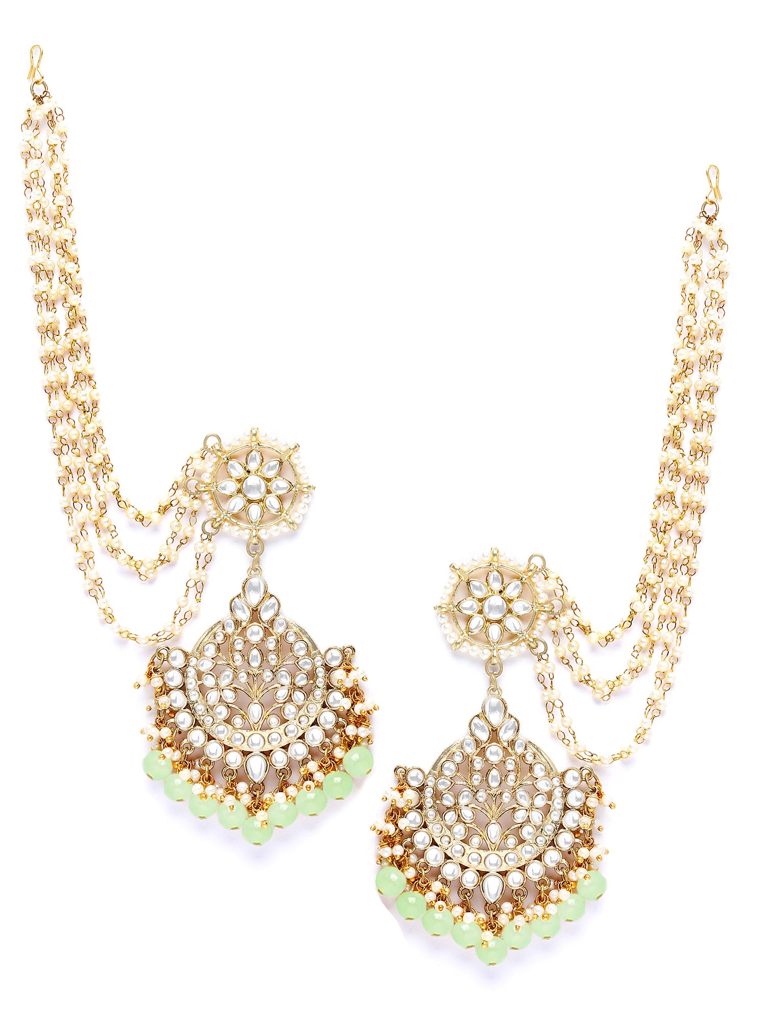 Karatcart Gold Plated Light Green Beads Kundan Kaanchain Earrings for Women