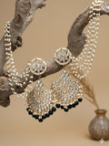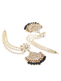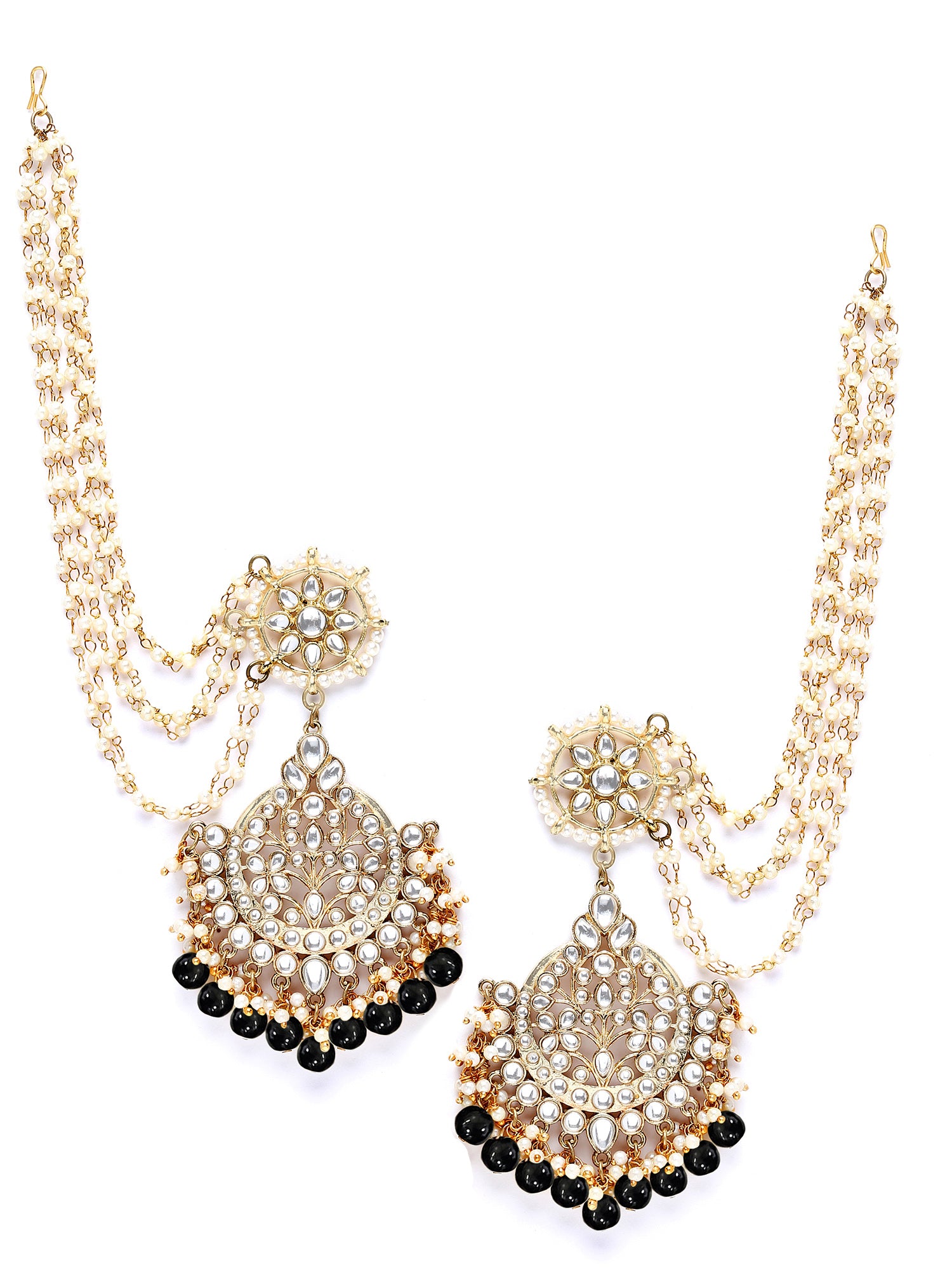 Karatcart Gold Plated Black Beads Kundan Kaanchain Earrings for Women