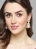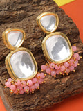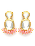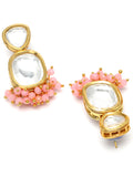 Karatcart Gold Plated Pink Crystal Polki Kundan Drop Earrings for Women