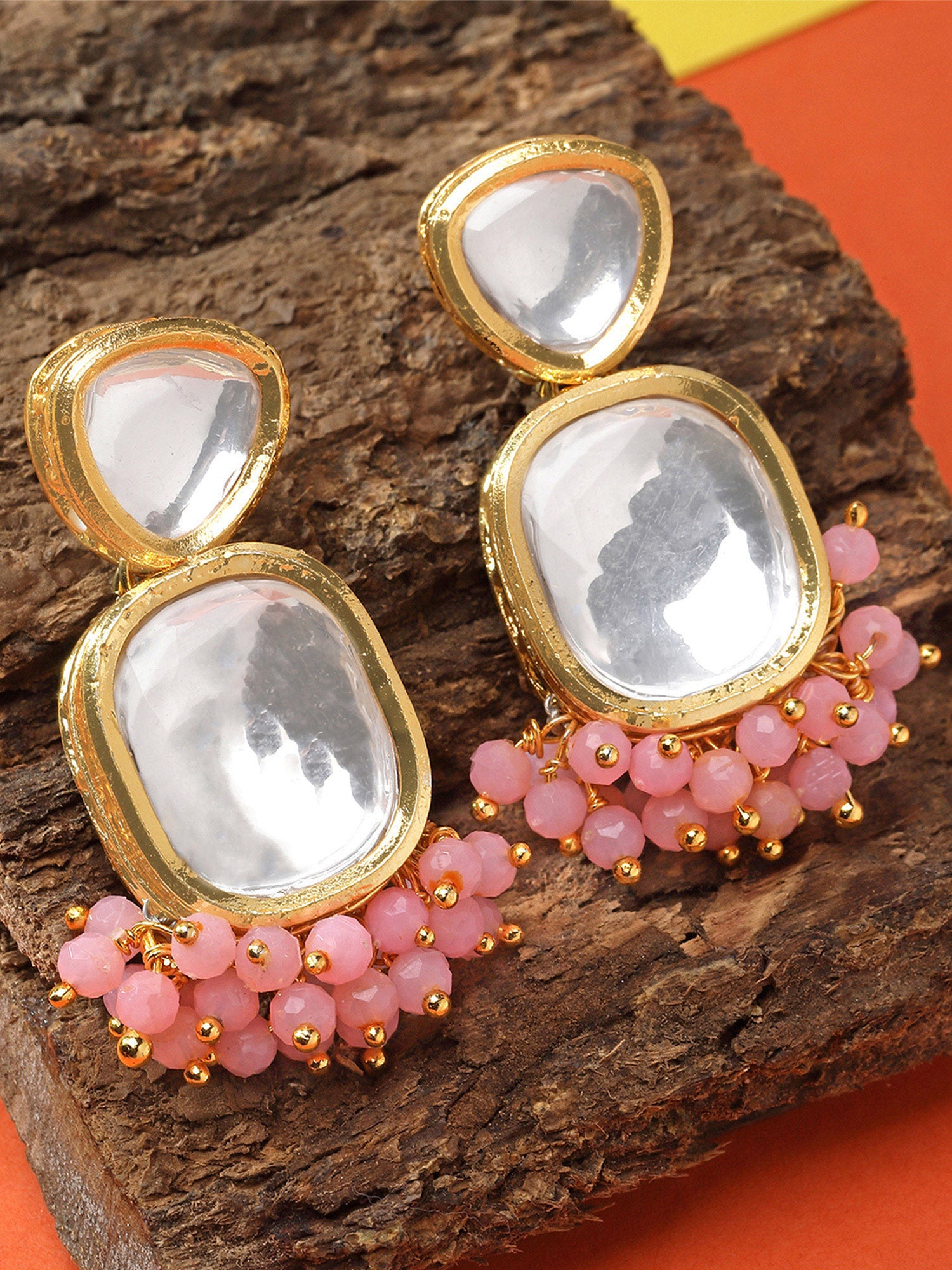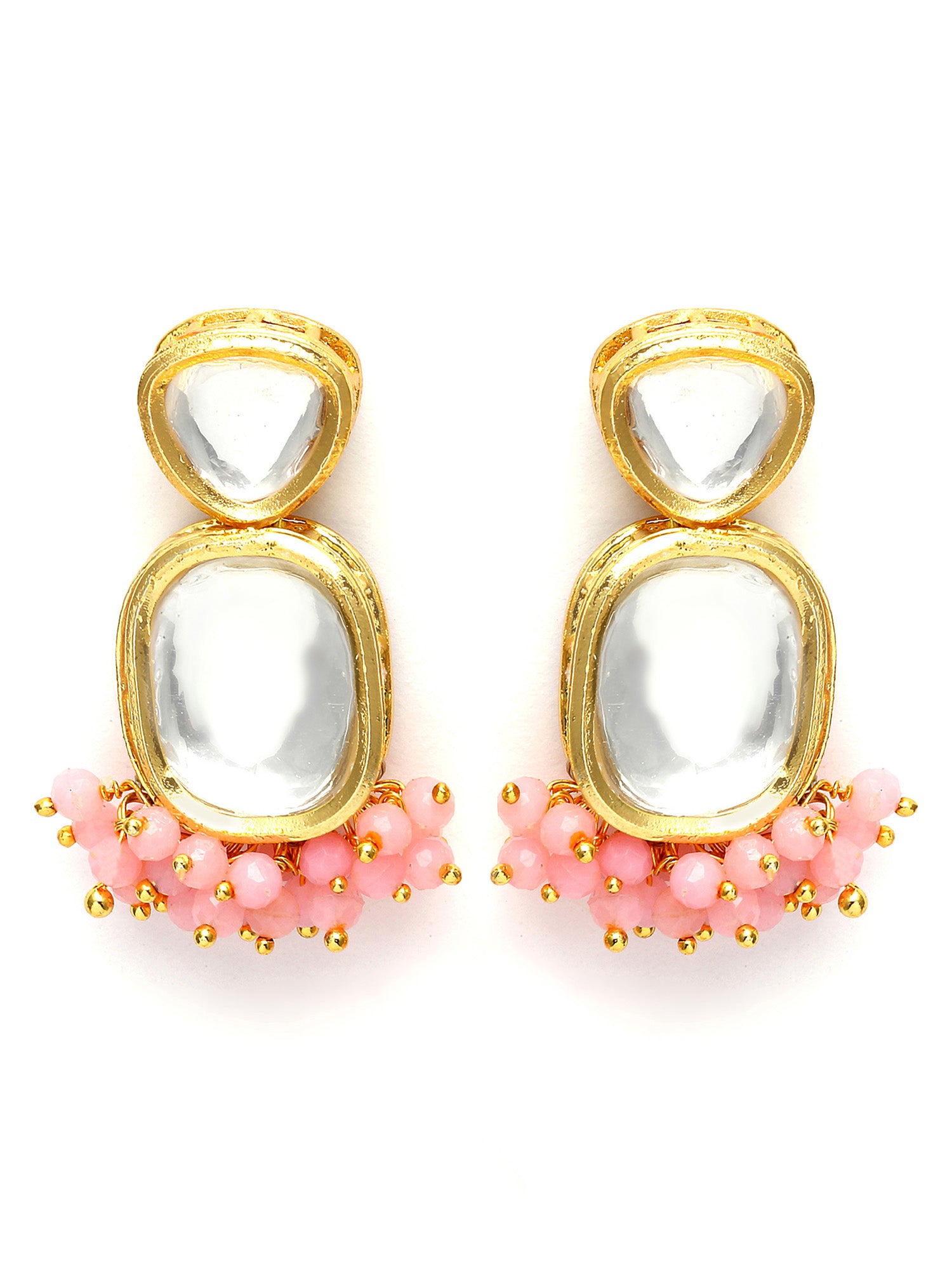 - This is a Pink Earrings by Brand Karatcart which has Polki stones.This is Gold Plated. We at KARATCART understand your desire to look the best on any day & we thrive in making any day an occasion. Every individual at Karatcart carries a passion for jewellery and it reflects in our beautiful designs as well as in our breathtaking craftsmanship. We create unique jewellery so you can make heads turn..