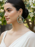 Karatcart Gold Plated Light Blue Bead Kundan Jhumki Hoop Earrings for Women