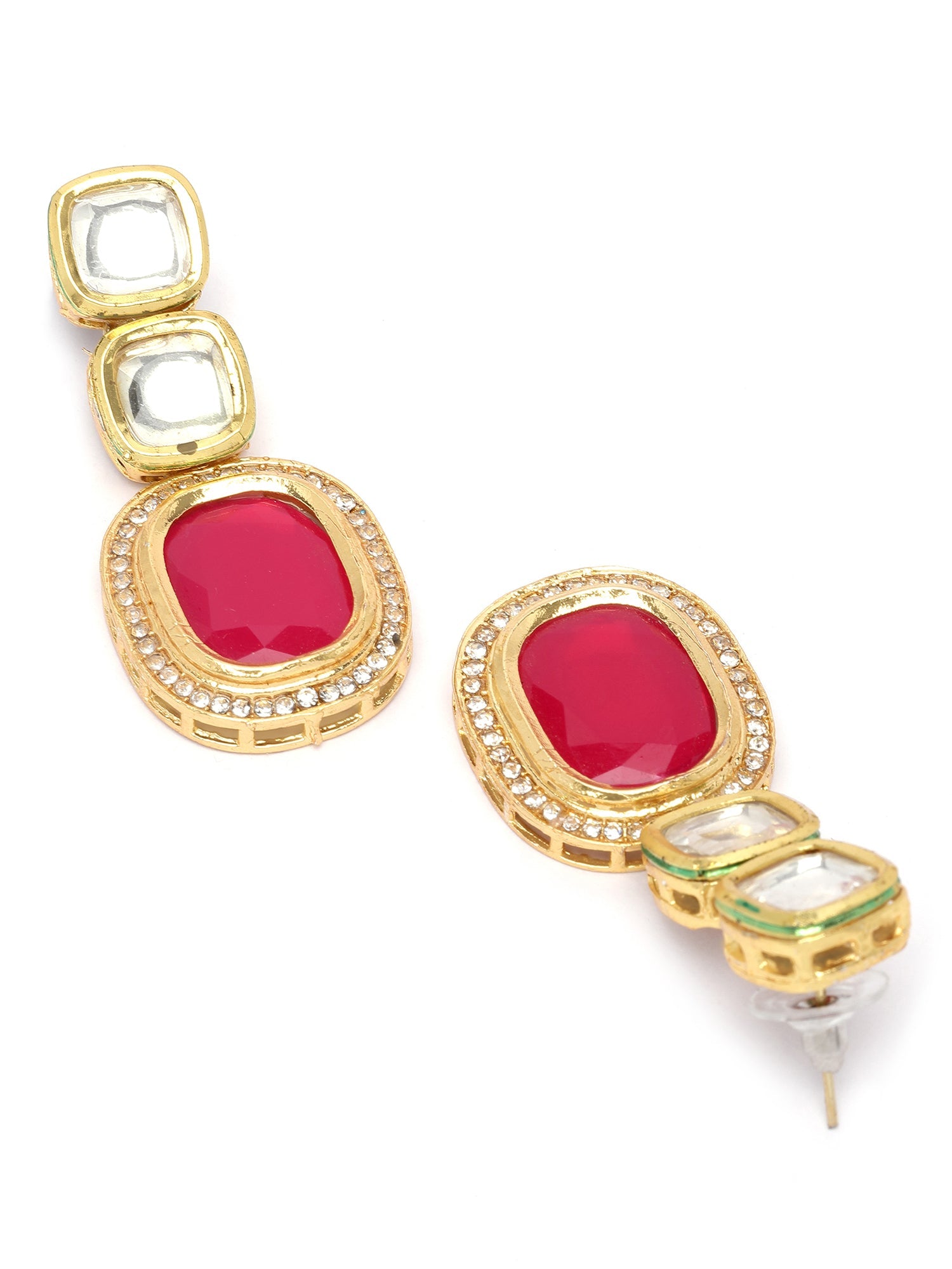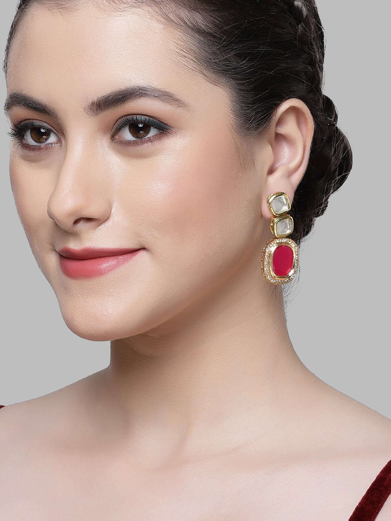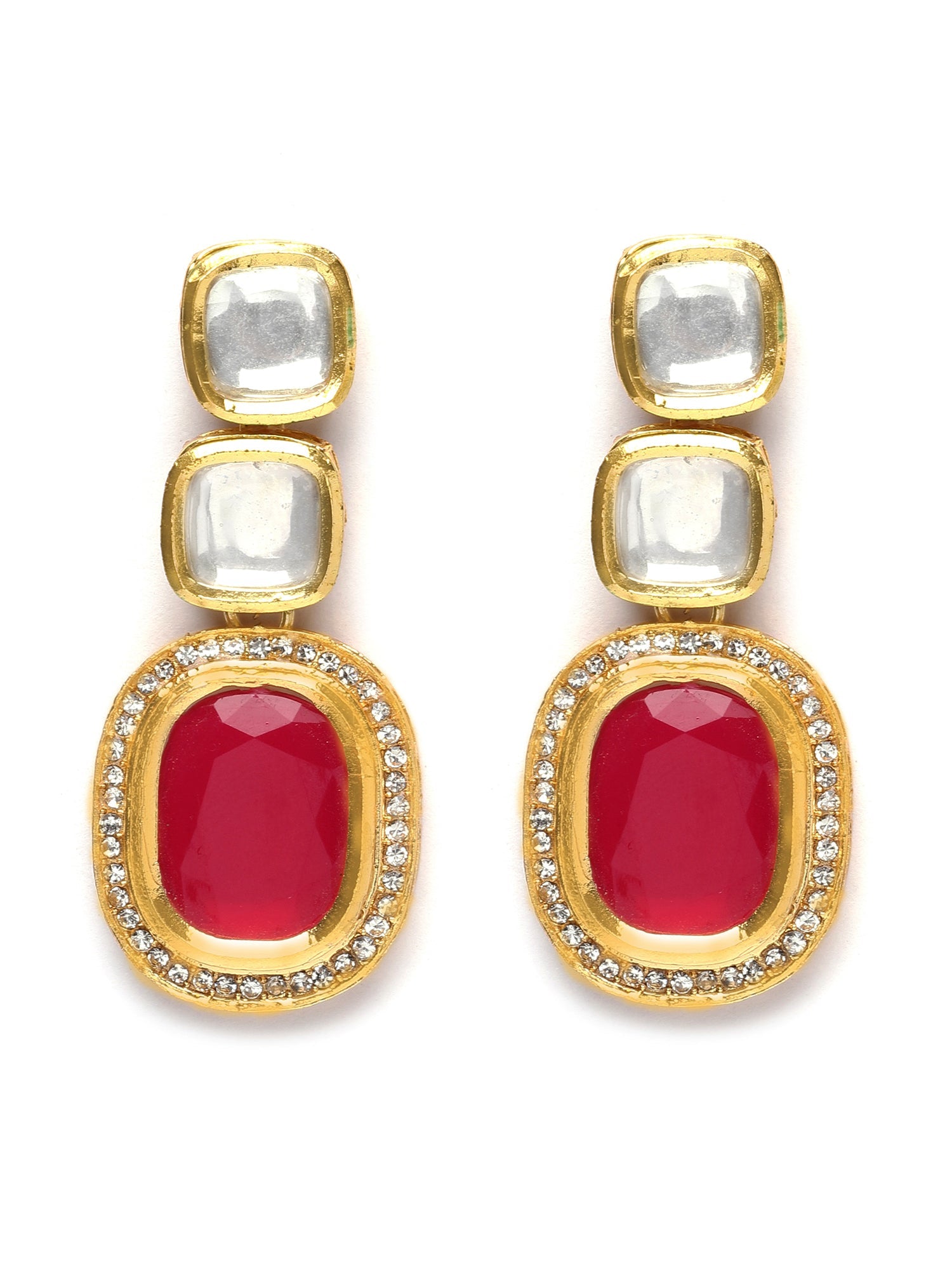 - Karatcart Gold Red Polki Kundan Drop Earring for Women. Our products are designed with high-quality material and these products are enhanced with plating that are skin-friendly & with love to reach your heart.