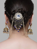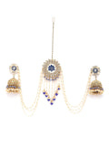 Karatcart Gold Plated Blue Meena Kundan Jhumki Earrings with Juda Pin for Women
