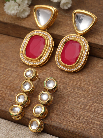 Karatcart Red and Gold Set of 2 Polki Kundan Drop Earrings for Women