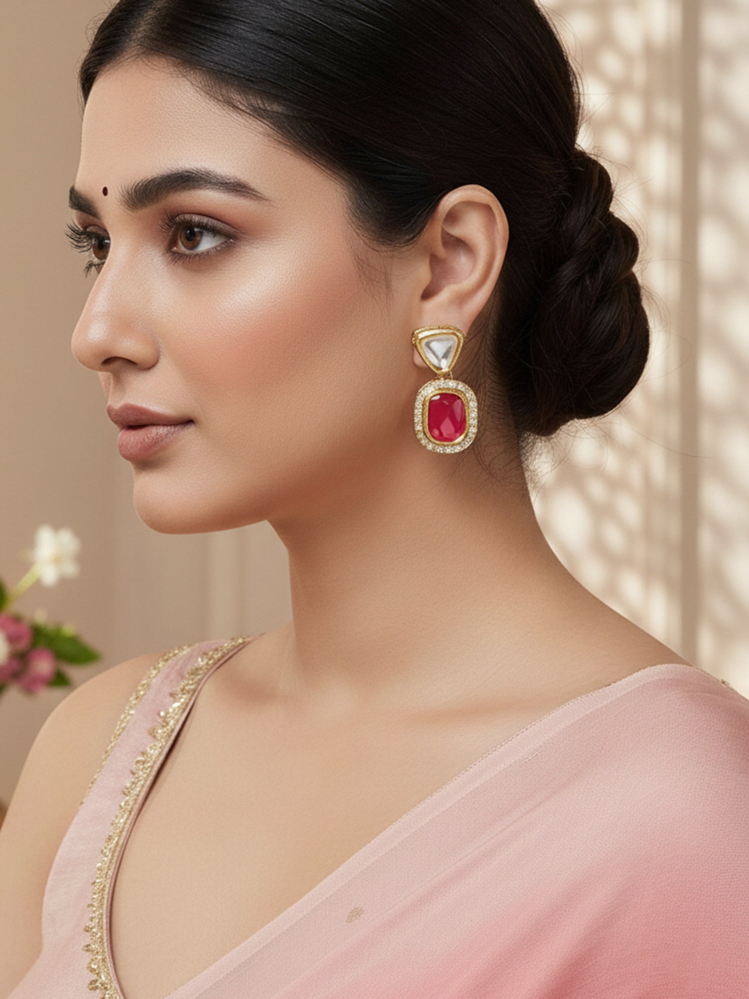 - This is a Red Earrings by Brand Karatcart which has Polki stones.This is Gold Plated. We at KARATCART understand your desire to look the best on any day & we thrive in making any day an occasion. Every individual at Karatcart carries a passion for jewellery and it reflects in our beautiful designs as well as in our breathtaking craftsmanship. We create unique jewellery so you can make heads turn..