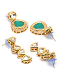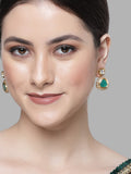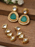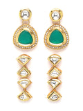 Karatcart Green and Gold Set of 2 Polki Kundan Drop Earrings for Women