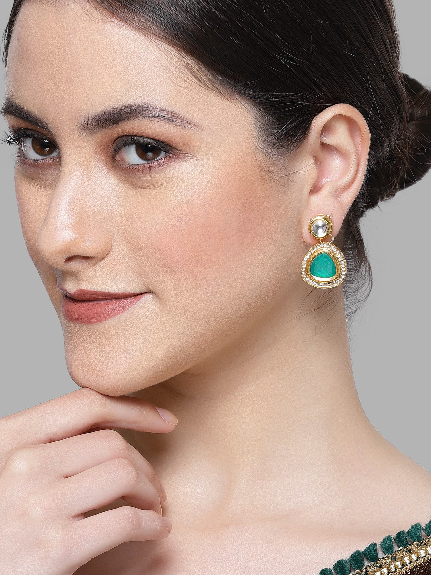- This is a Green Earrings by Brand Karatcart which has Polki stones.This is Gold Plated. We at KARATCART understand your desire to look the best on any day & we thrive in making any day an occasion. Every individual at Karatcart carries a passion for jewellery and it reflects in our beautiful designs as well as in our breathtaking craftsmanship. We create unique jewellery so you can make heads turn..