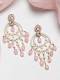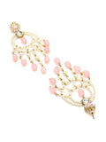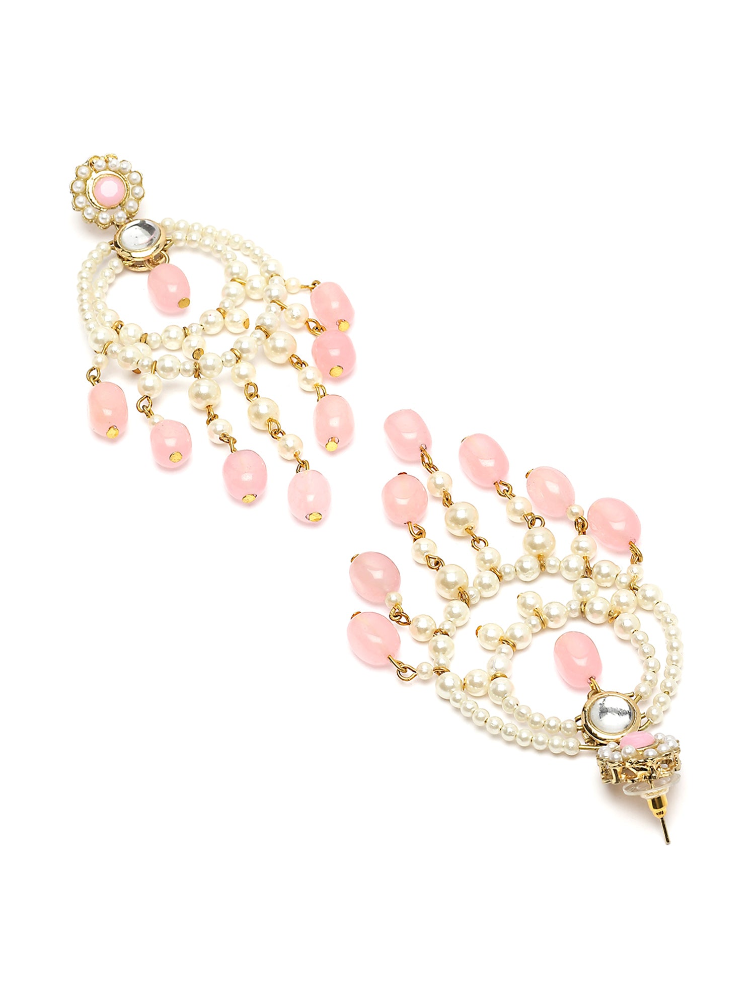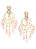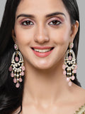 Karatcart Gold Plated Pink Tumble and Pearl Kundan Drop Hoop Earring for Women