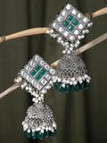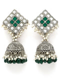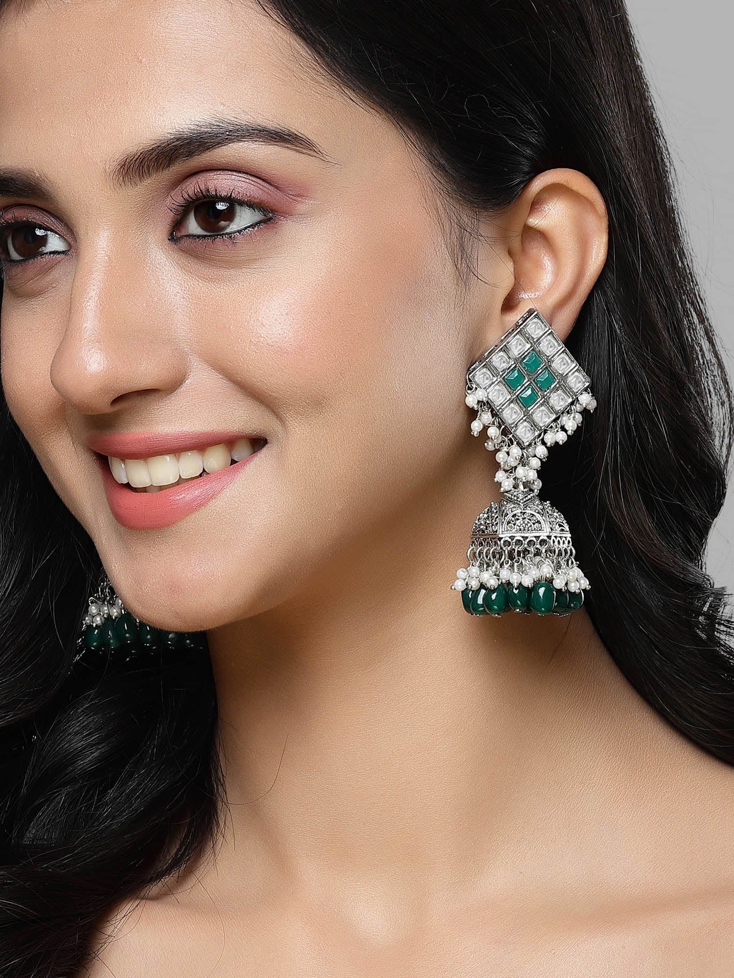 Karatcart Oxidised Silver Green Tumble Jhumki Earring for Women