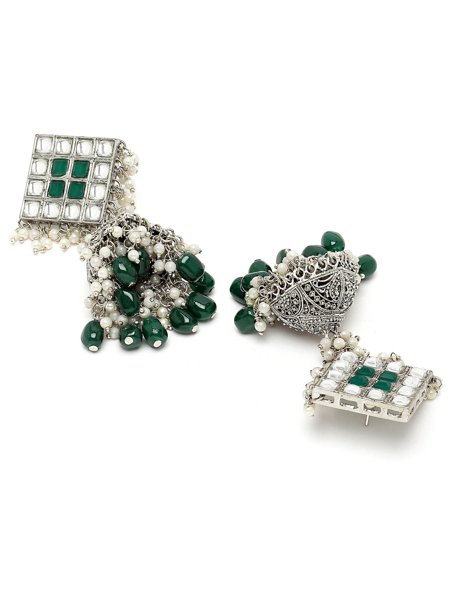 - This is a Green Earrings by Brand Karatcart which has Kundan stones.This is Oxidised Silver. We at KARATCART understand your desire to look the best on any day & we thrive in making any day an occasion. Every individual at Karatcart carries a passion for jewellery and it reflects in our beautiful designs as well as in our breathtaking craftsmanship. We create unique jewellery so you can make heads turn..