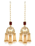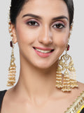 Karatcart Red Carved Stone and Pearl Kundan Kaanchain Drop Earring for Women