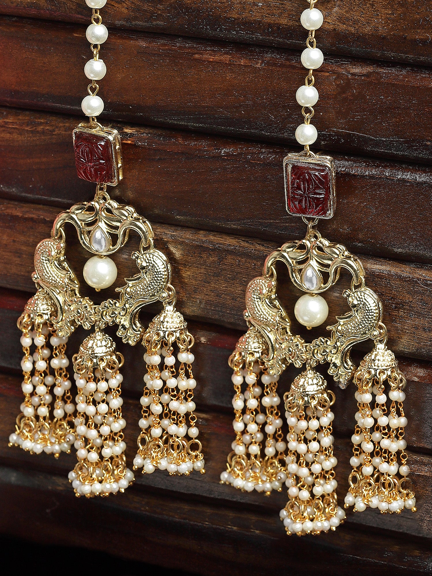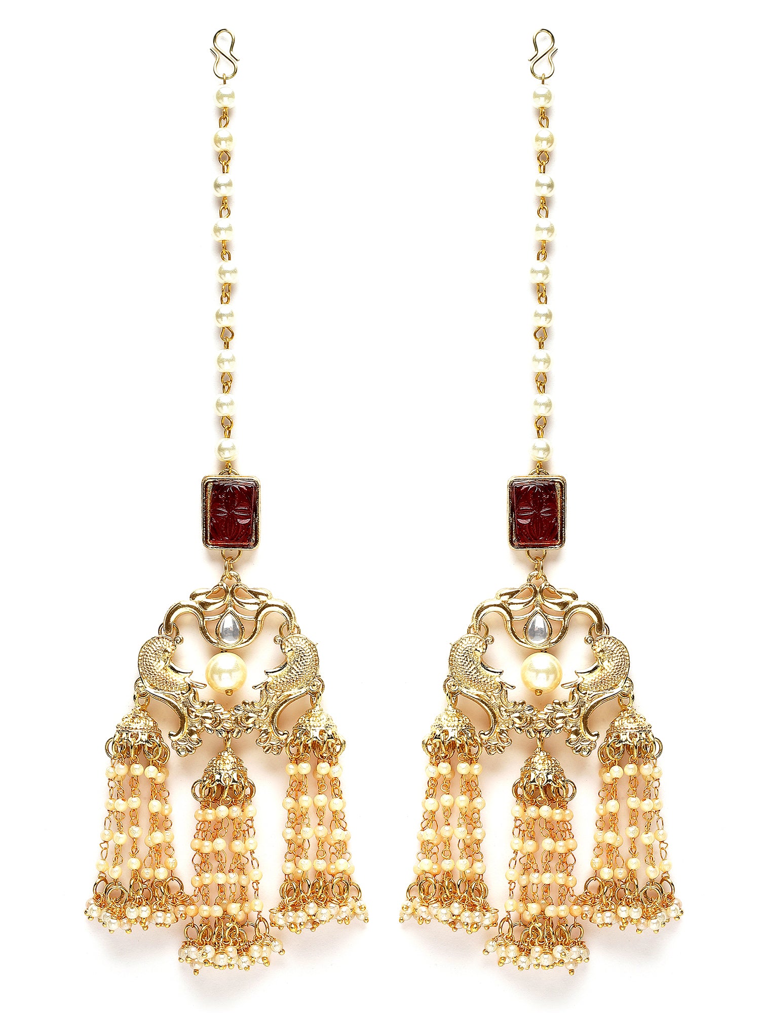 - Karatcart Red Carved Stone and Pearl Kundan Kaanchain Drop Earring for Women. Our products are designed with high-quality material and these products are enhanced with plating that are skin-friendly & with love to reach your heart.