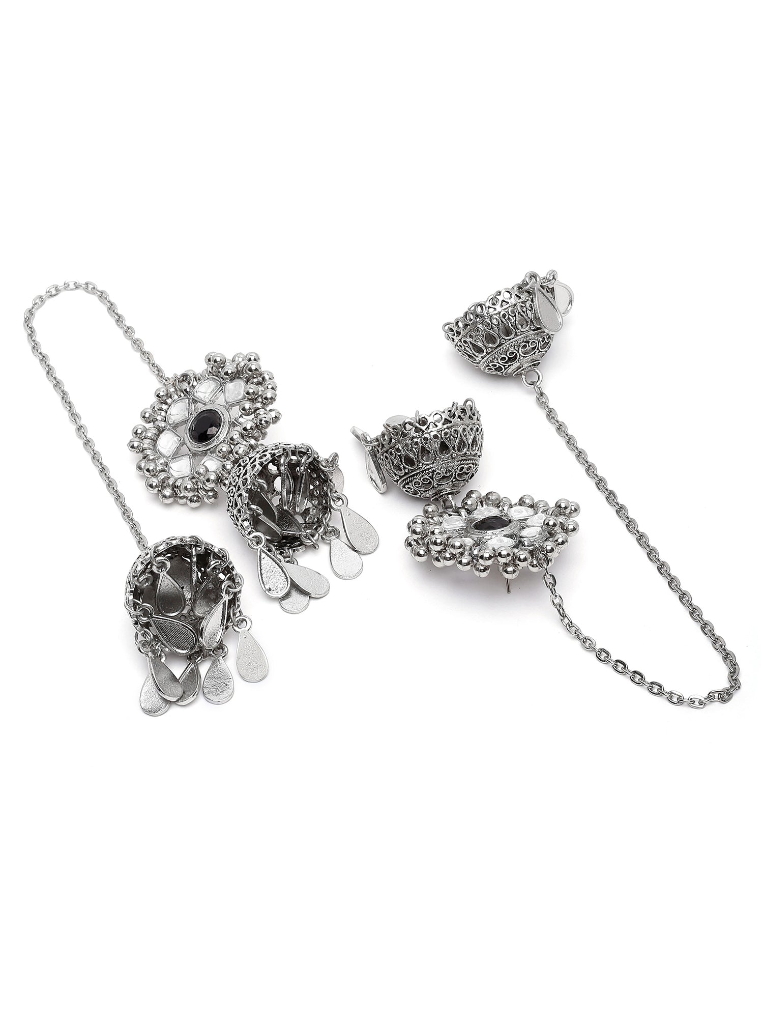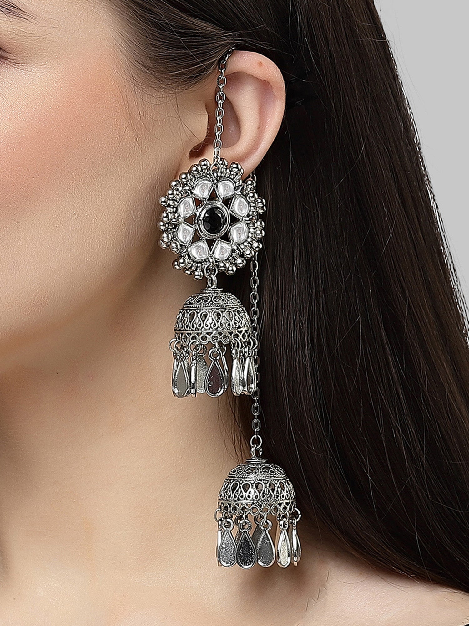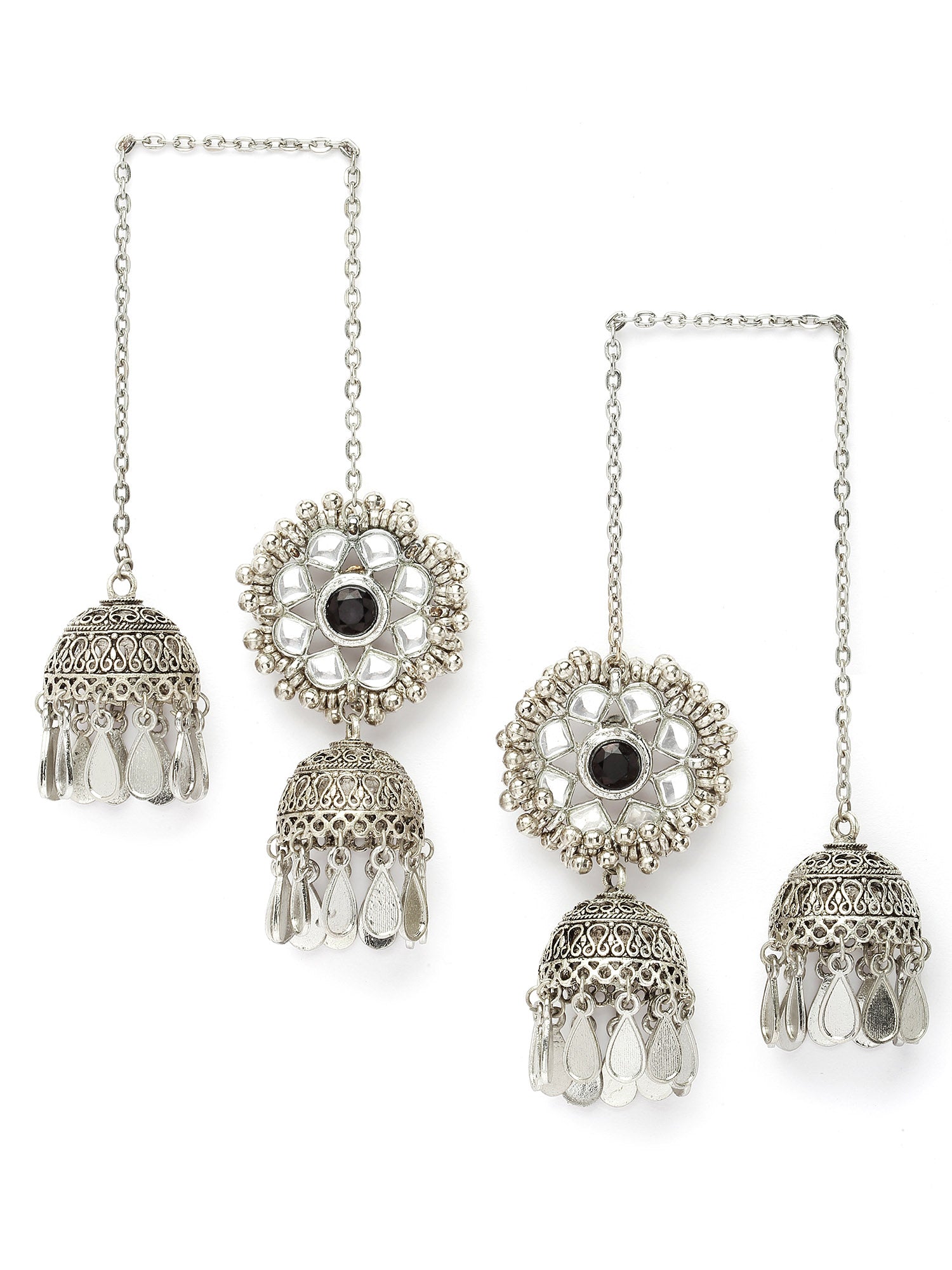 Karatcart Silver Plated Kundan Studded Kaanchain Jhumki Earrings