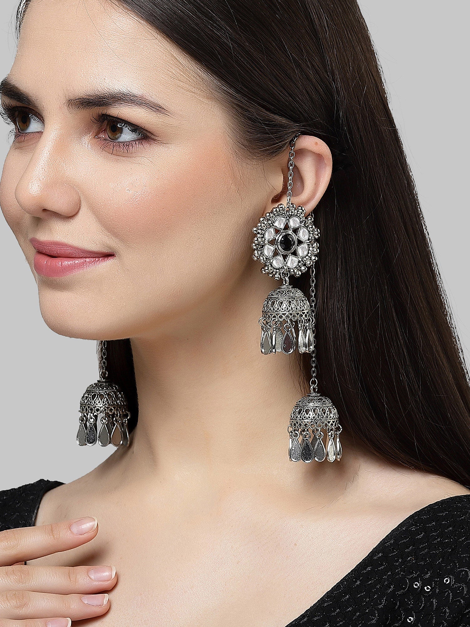 - This is a Silver Earrings by Brand Karatcart which has Kundan stones.This is Oxidised Silver. We at KARATCART understand your desire to look the best on any day & we thrive in making any day an occasion. Every individual at Karatcart carries a passion for jewellery and it reflects in our beautiful designs as well as in our breathtaking craftsmanship. We create unique jewellery so you can make heads turn..