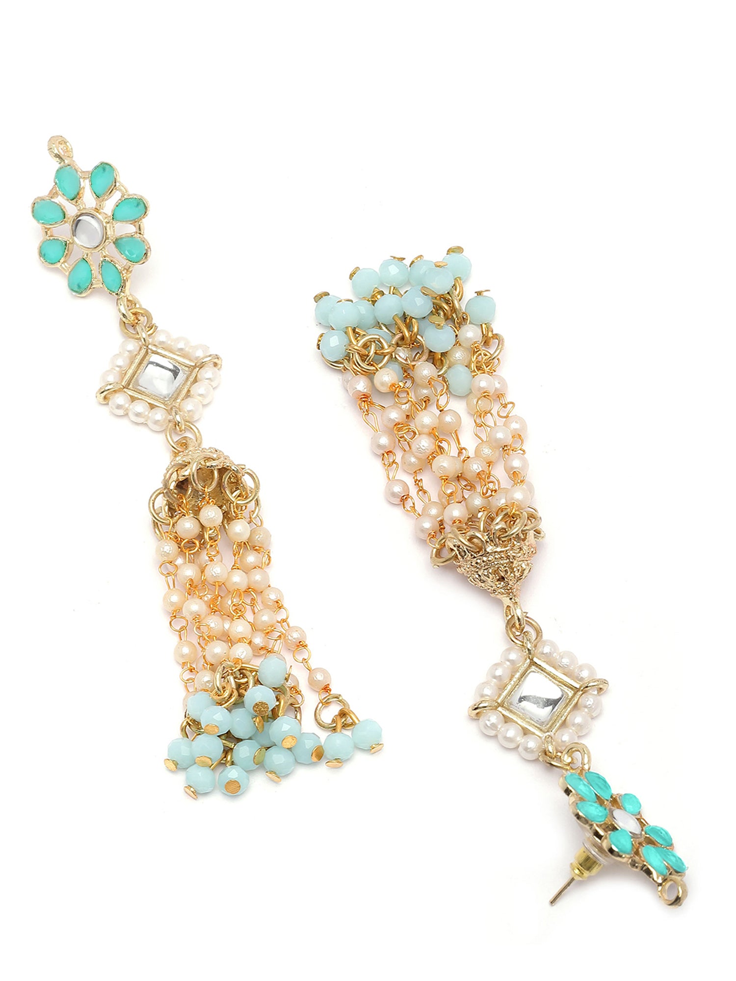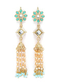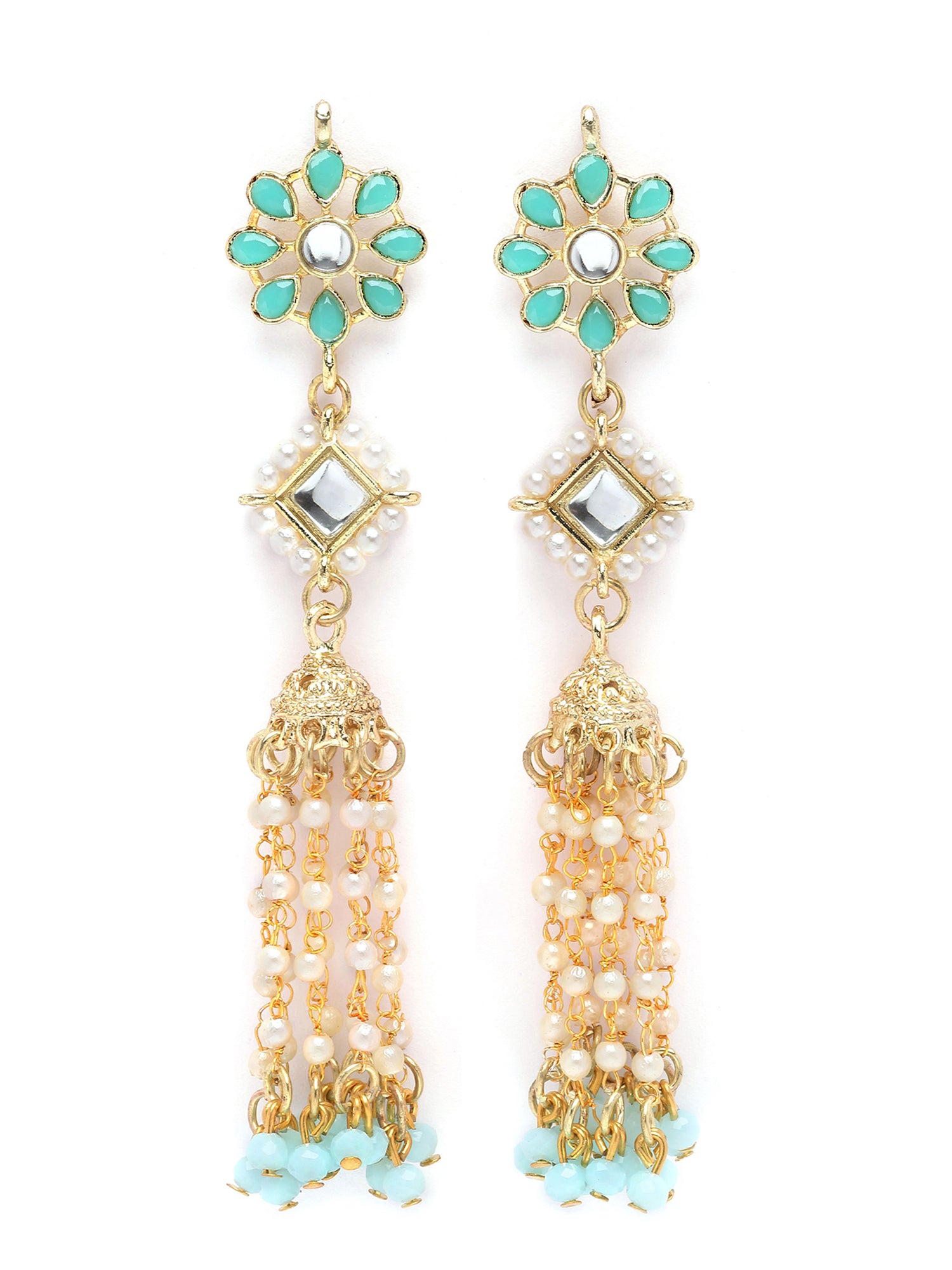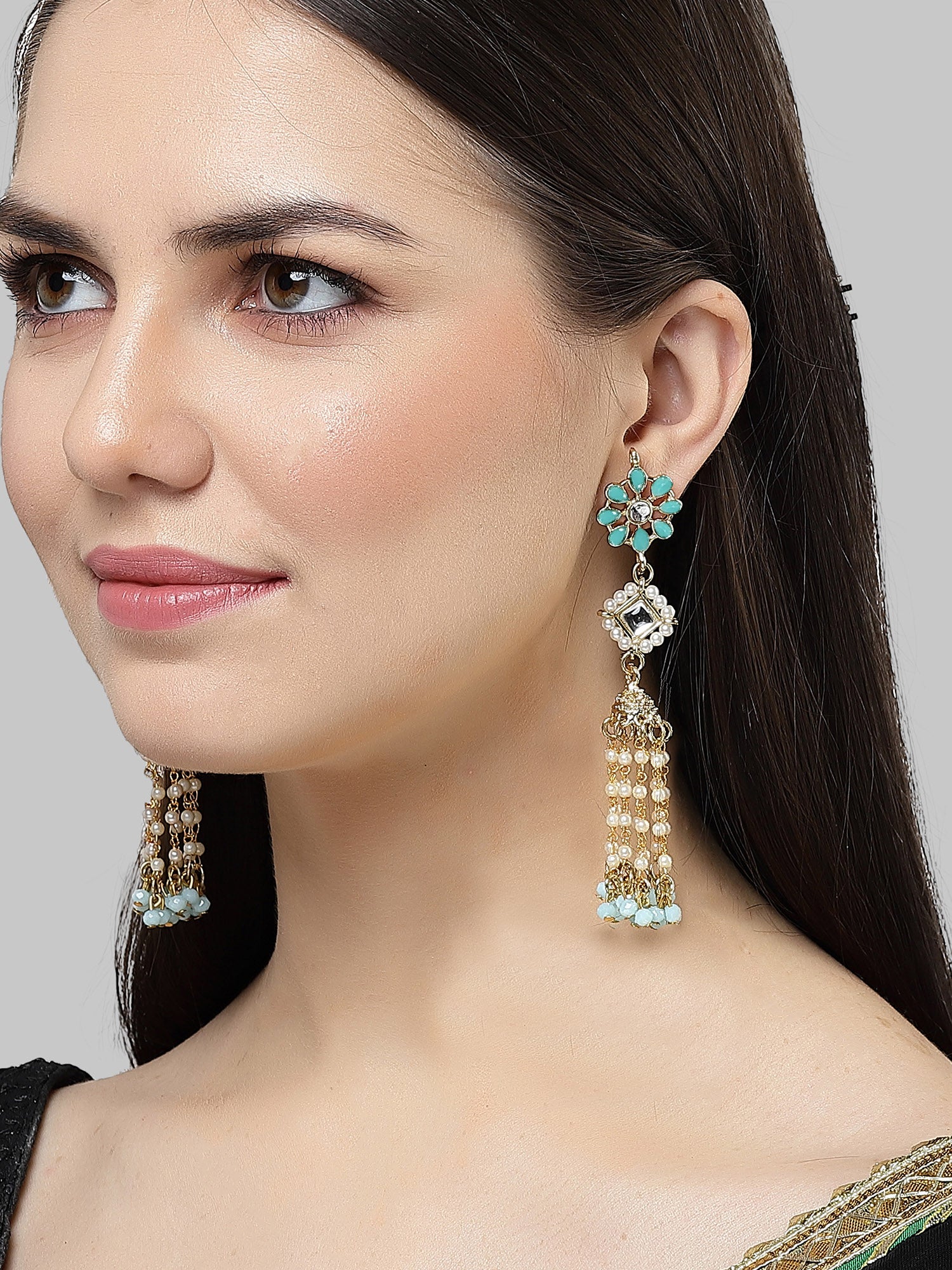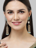Karatcart Gold Plated Light Blue Kundan Drop Earrings for Women