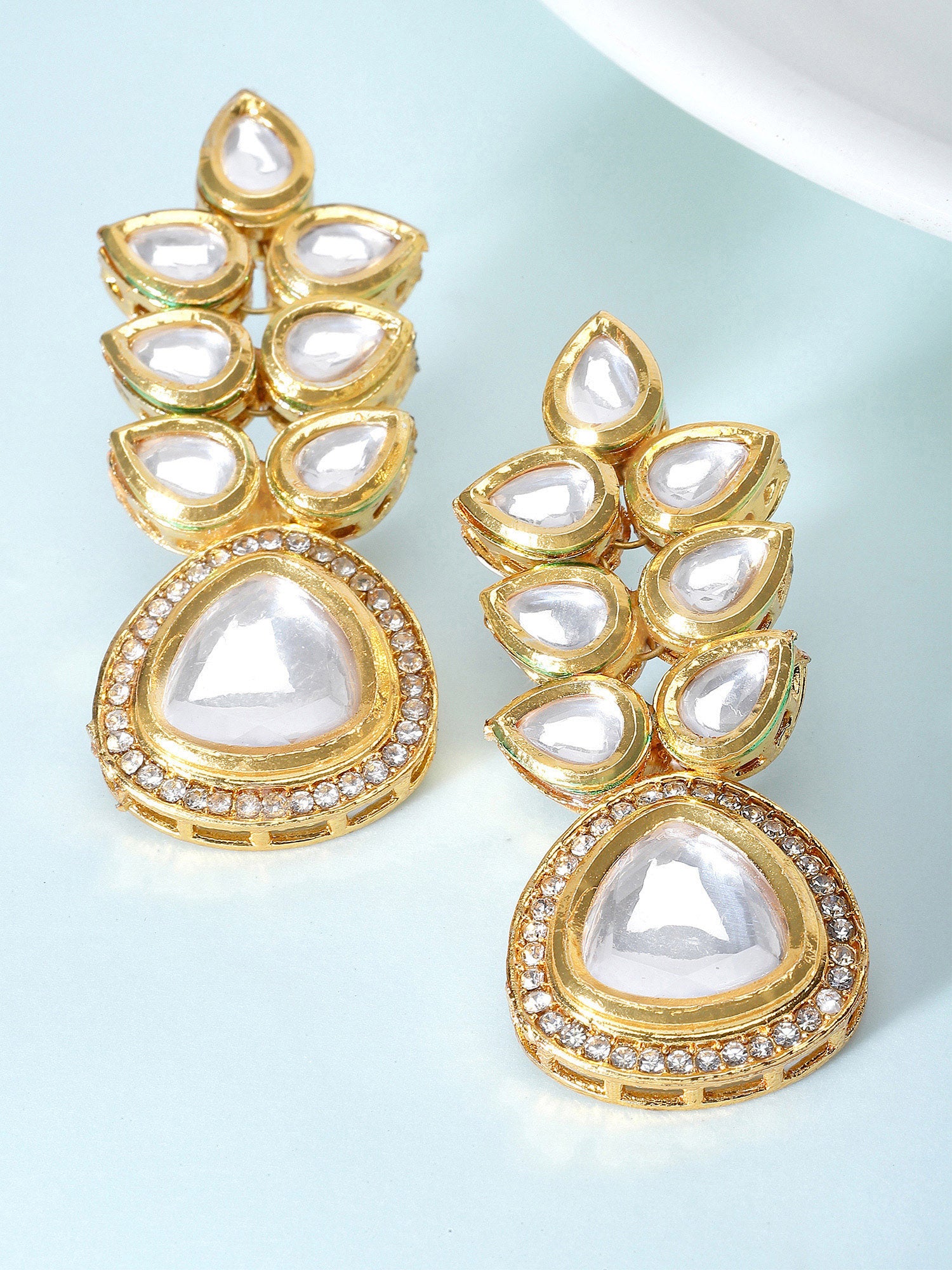 Karatcart Gold-Plated Polki Kundan Drop Earring for Women