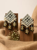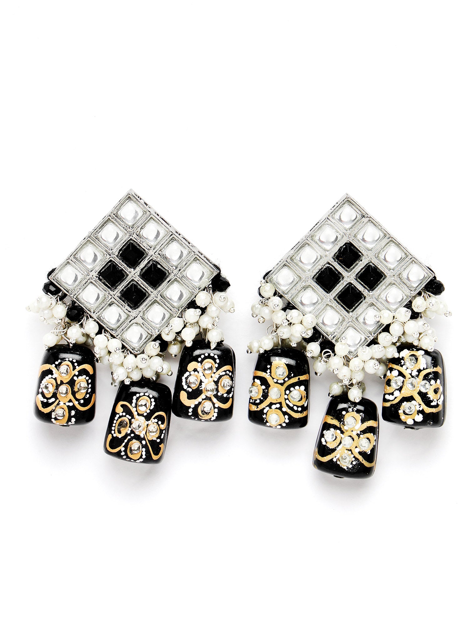 Karatcart Oxidised Silver Black Tumble Studded Diamond Shape Kundan Dangler Earrings for Women