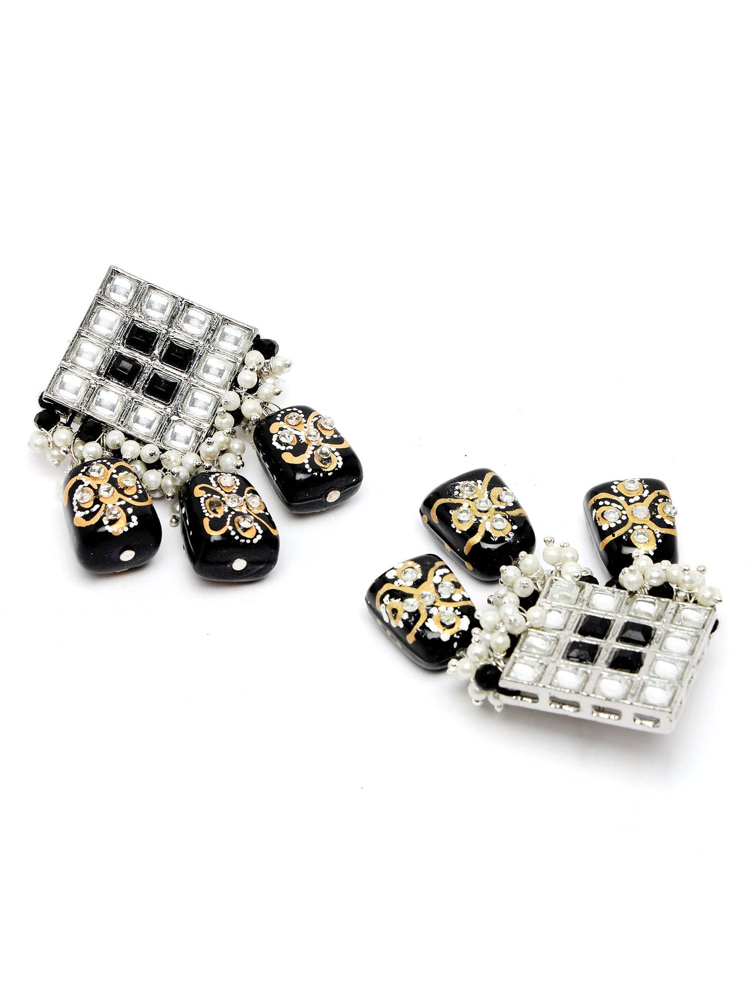 - This is a Black Earrings by Brand Karatcart which has Kundan stones.This is Oxidised Silver. We at KARATCART understand your desire to look the best on any day & we thrive in making any day an occasion. Every individual at Karatcart carries a passion for jewellery and it reflects in our beautiful designs as well as in our breathtaking craftsmanship. We create unique jewellery so you can make heads turn..
