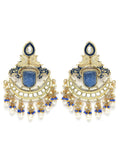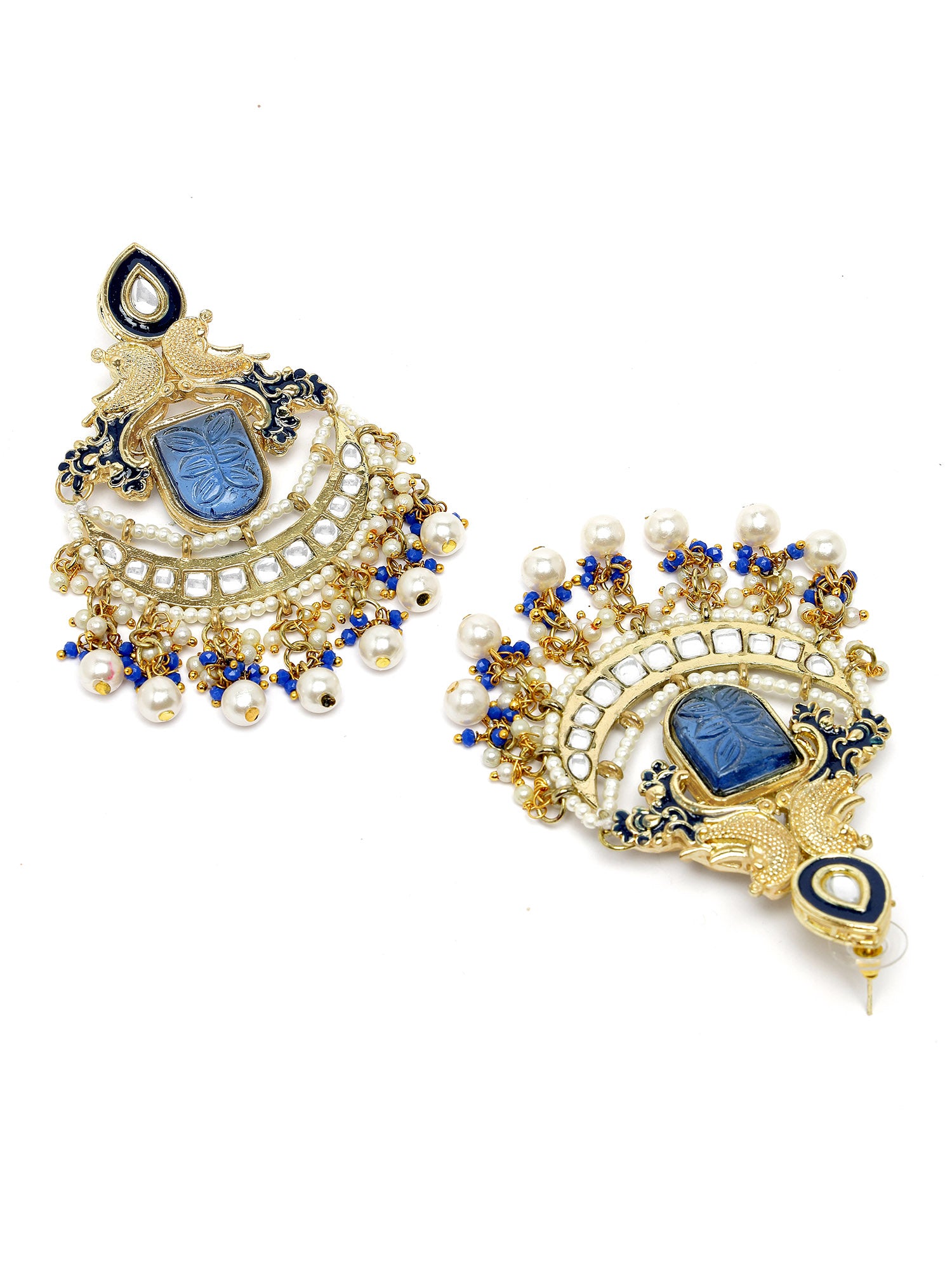Karatcart Gold Plated Blue Carved Stone Kundan Dangler Earrings for Women