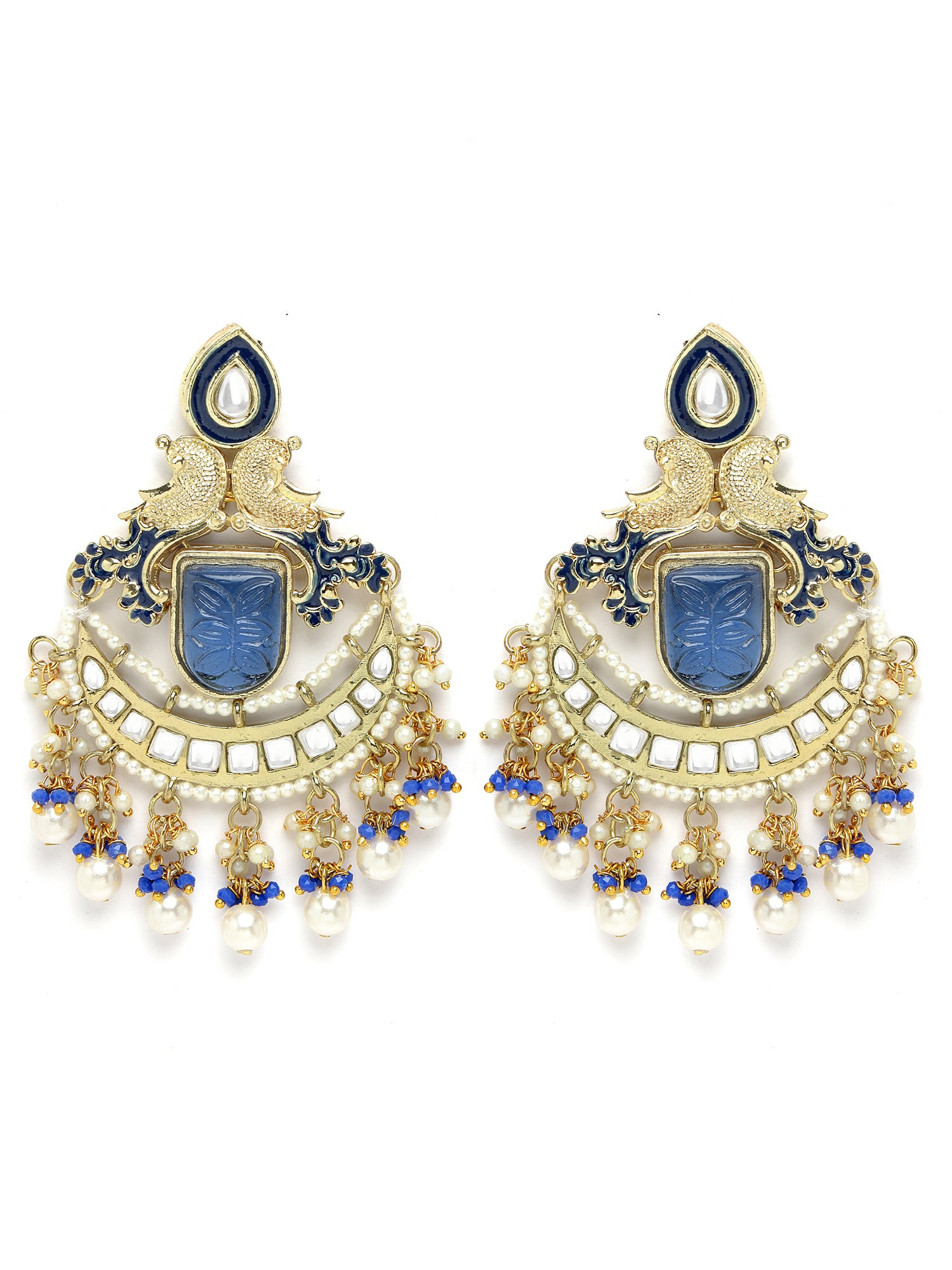 - This is a Blue Earrings by Brand Karatcart which has Kundan stones.This is Gold Plated. We at KARATCART understand your desire to look the best on any day & we thrive in making any day an occasion. Every individual at Karatcart carries a passion for jewellery and it reflects in our beautiful designs as well as in our breathtaking craftsmanship. We create unique jewellery so you can make heads turn..