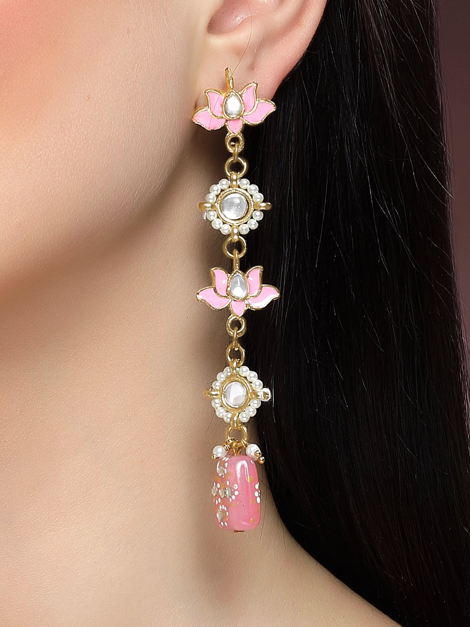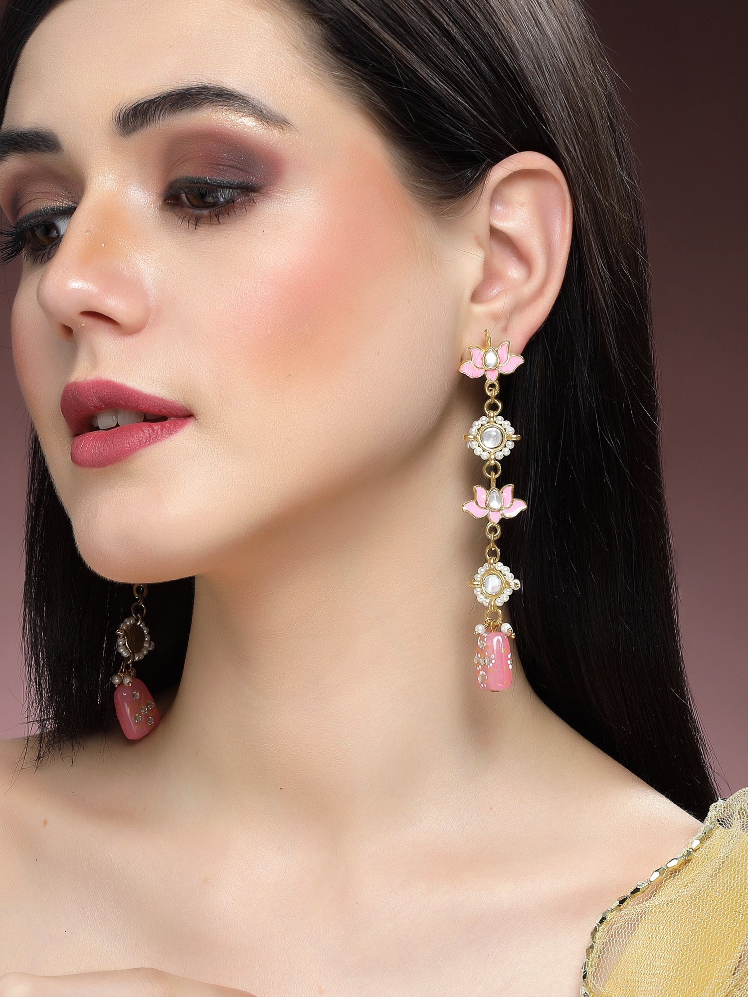 - This is a Pink Earrings by Brand Karatcart which has Kundan stones. This is Gold Plated. We at KARATCART understand your desire to look the best on any day & we thrive in making any day an occasion. Every individual at Karatcart carries a passion for jewellery and it reflects in our beautiful designs as well as in our breathtaking craftsmanship. We create unique jewellery so you can make heads turn.