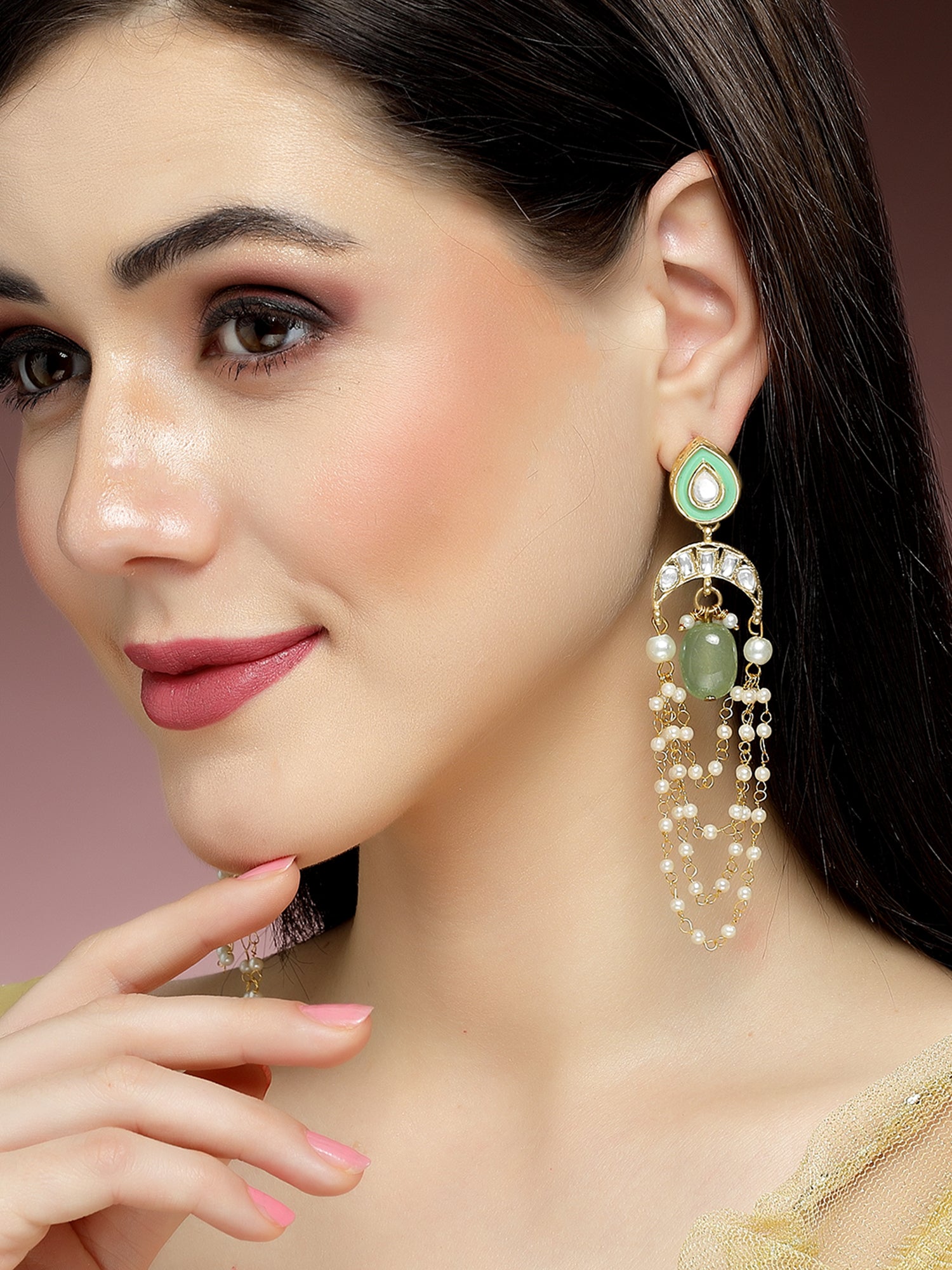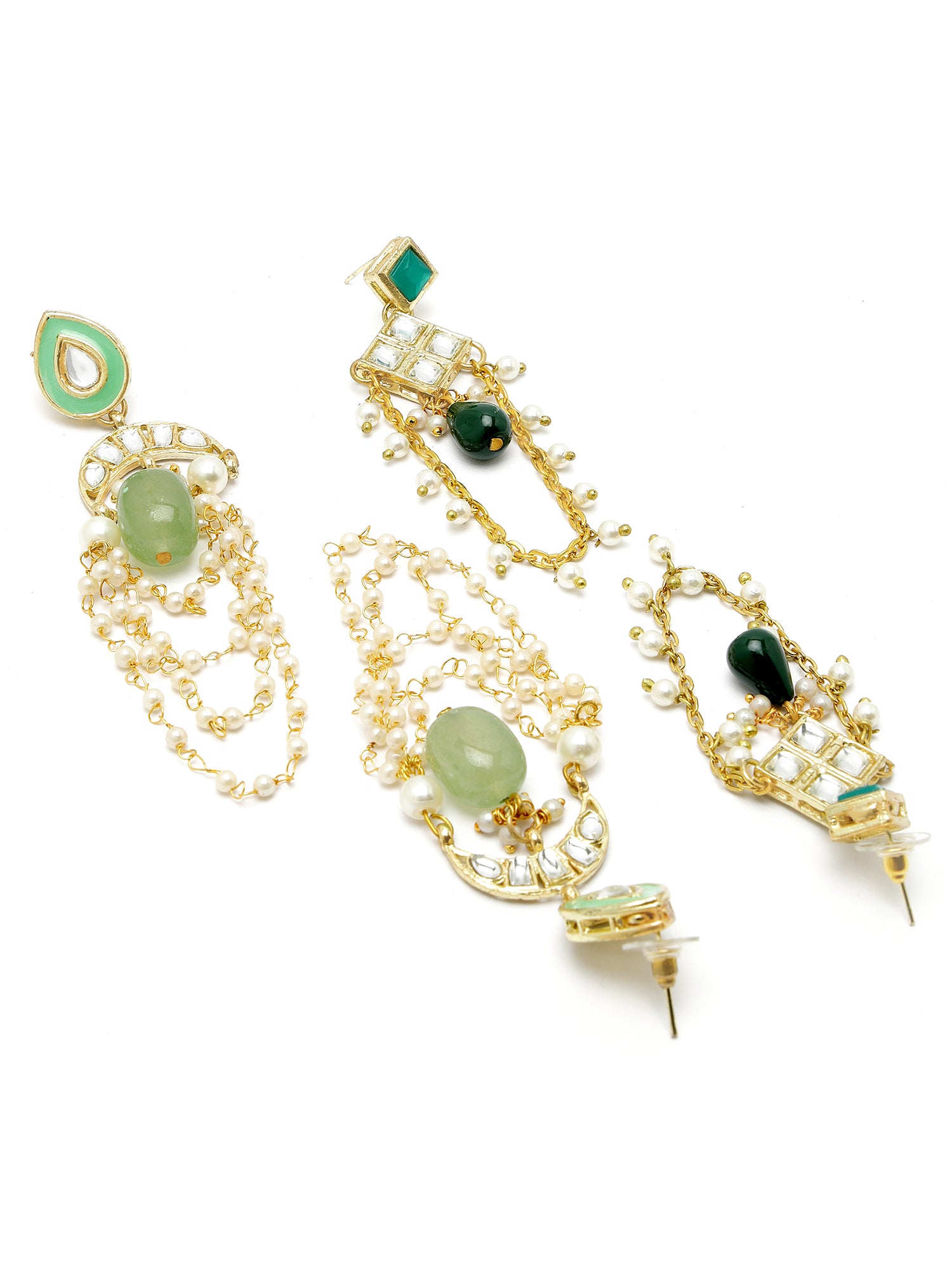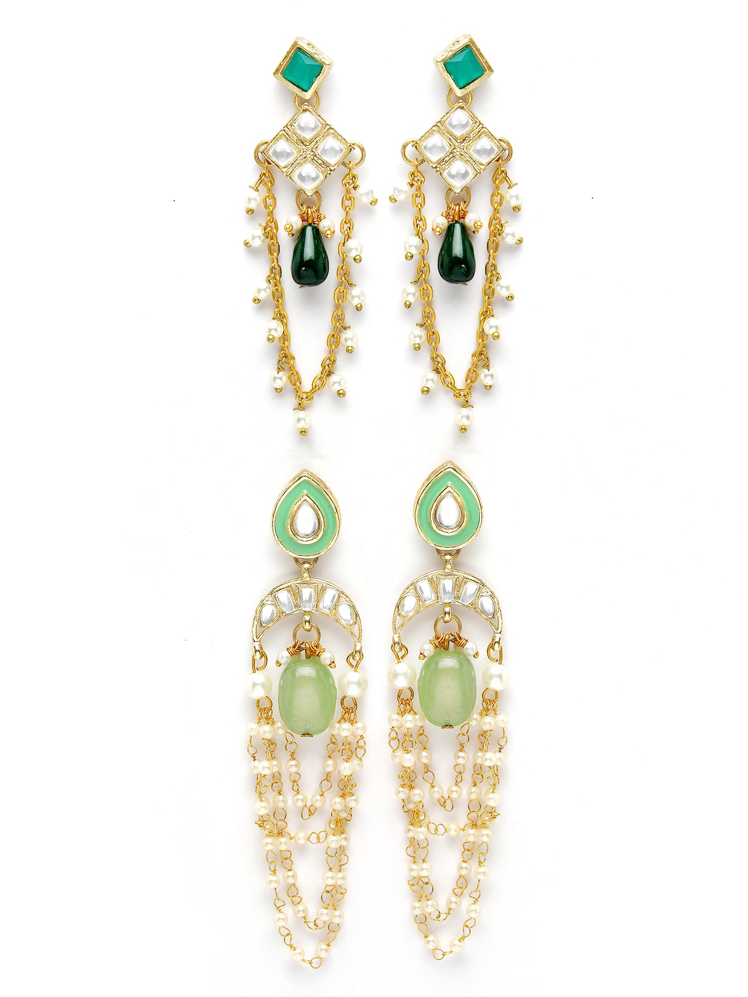 - Karatcart Set of 2 Gold Plated Light Green Kundan Drop Earrings for Women. Our products are designed with high-quality material and these products are enhanced with plating that are skin-friendly & with love to reach your heart.