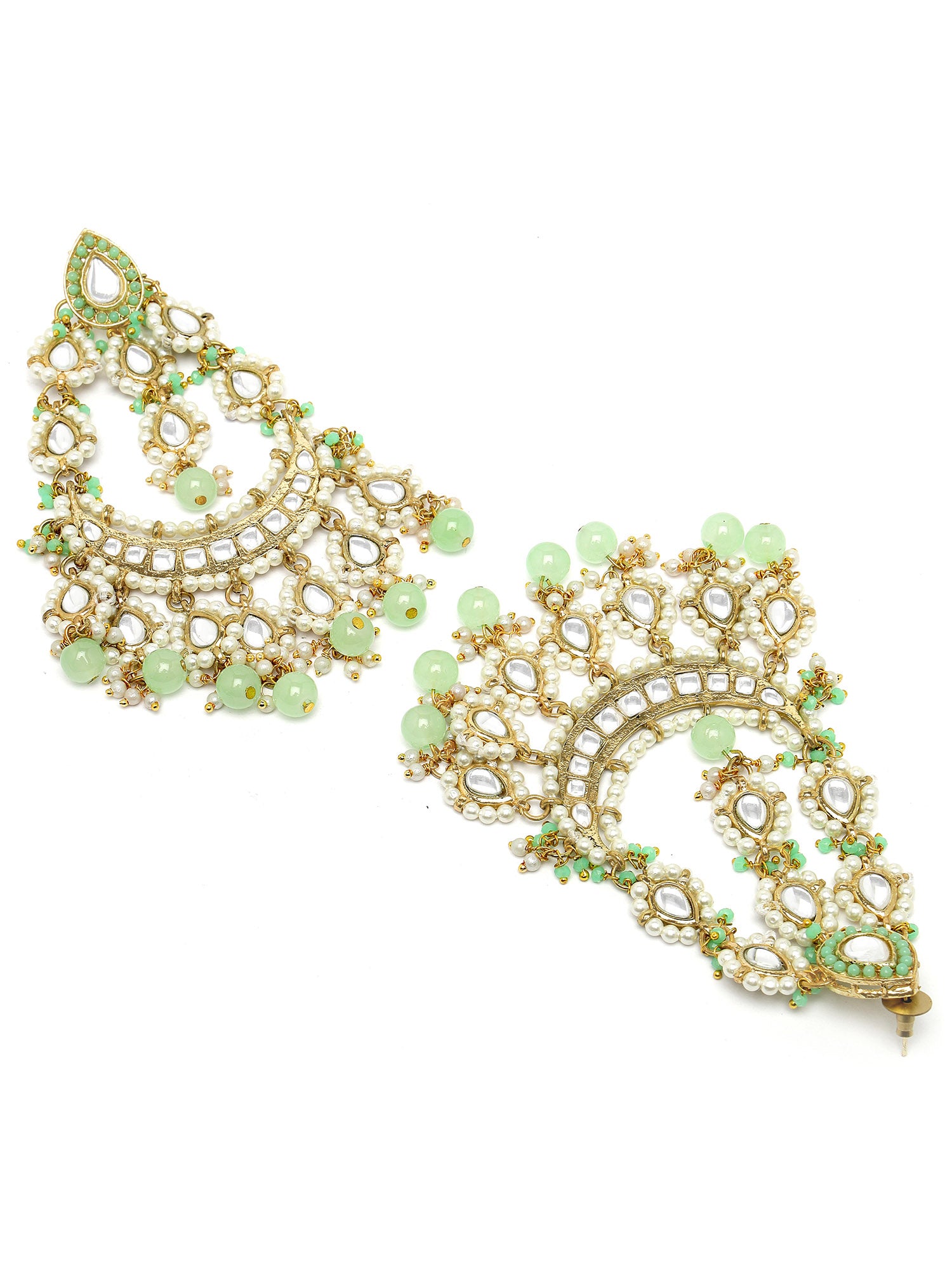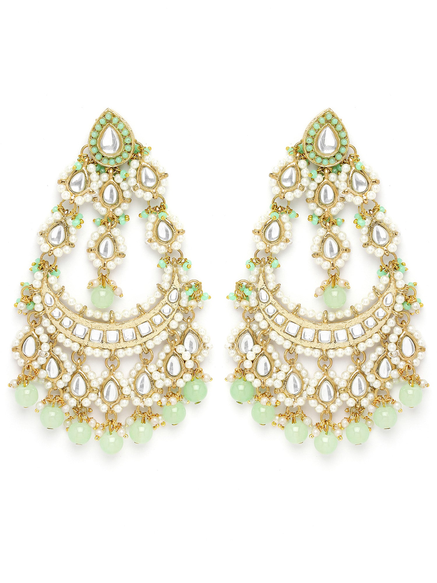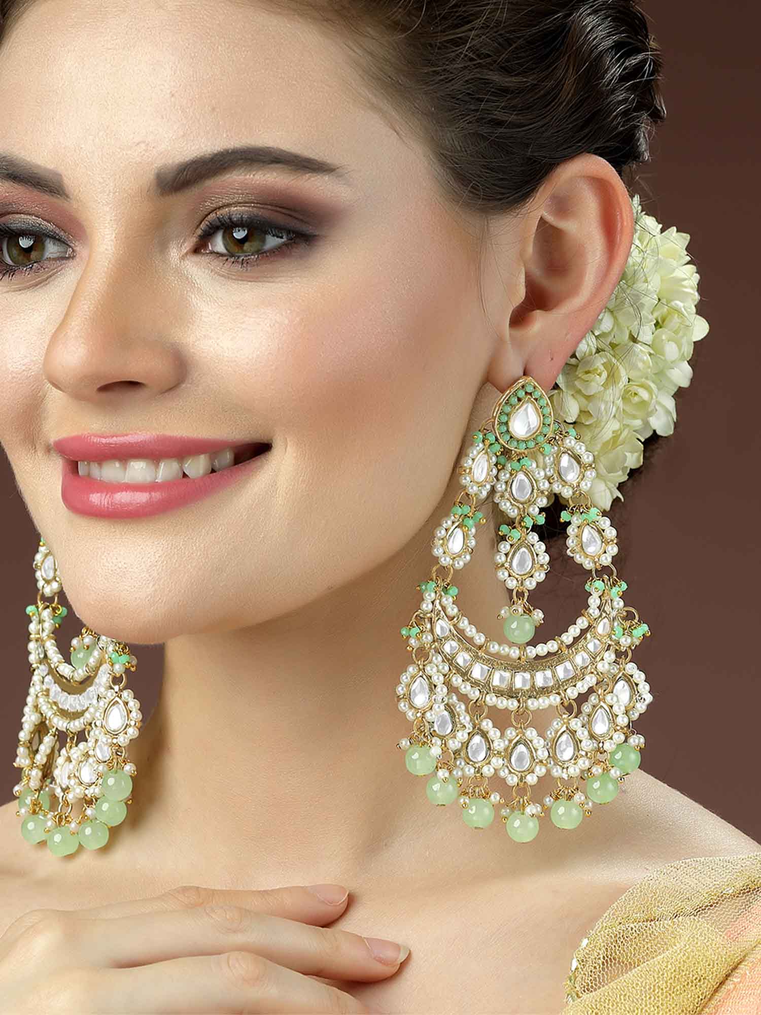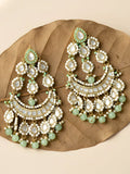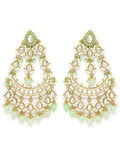 Karatcart Gold Plated Long Kundan Light Green Beads Dangler Earrings for Women