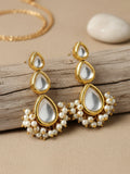 Karatcart Gold Plated Drop Shape Polki Kundan Earrings for Women