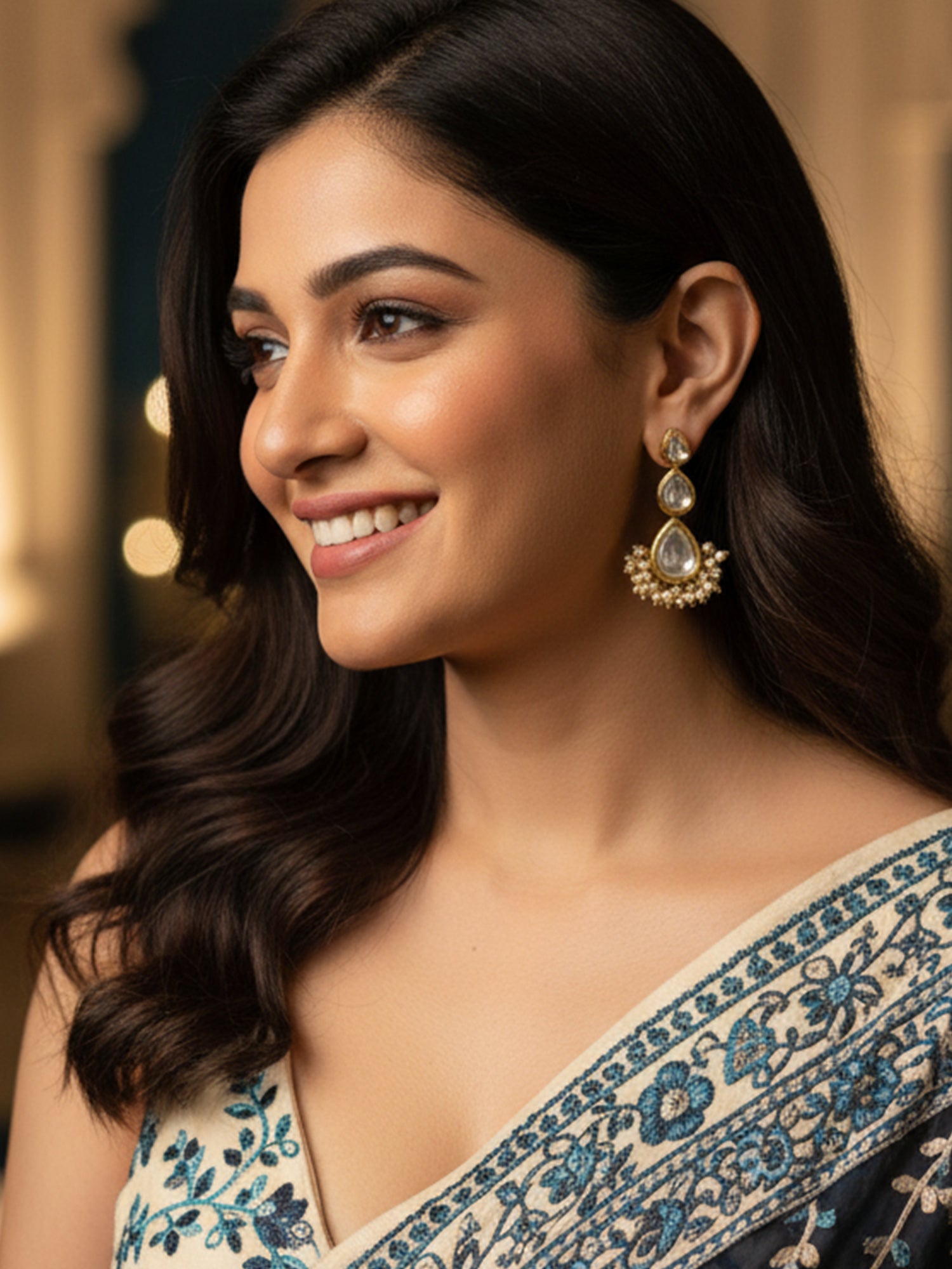 Introducing our captivating collection of earrings, meticulously crafted to enhance your elegance with timeless beauty and sophistication. Elevate your ensemble with our exquisite Kundan dangler earrings, designed to sway gracefully with every movement, adding a touch of regal charm to your look.Experience the allure of tradition with our Kundan Polki earrings, intricately embellished with dazzling stones to capture the essence of classic craftsmanship and elegance. Make a statement with our Polki earrings, exuding opulence and luxury with every wear.