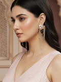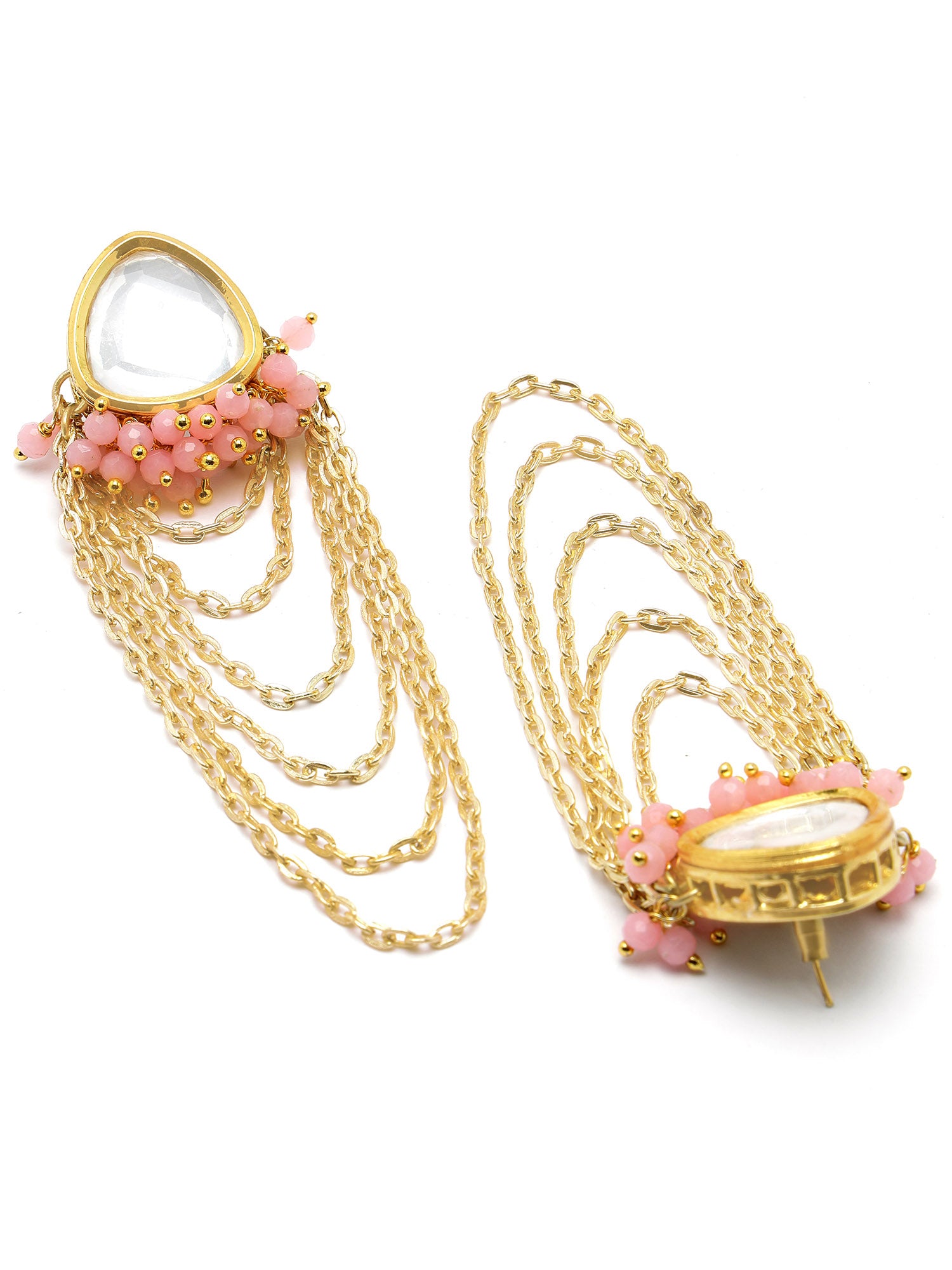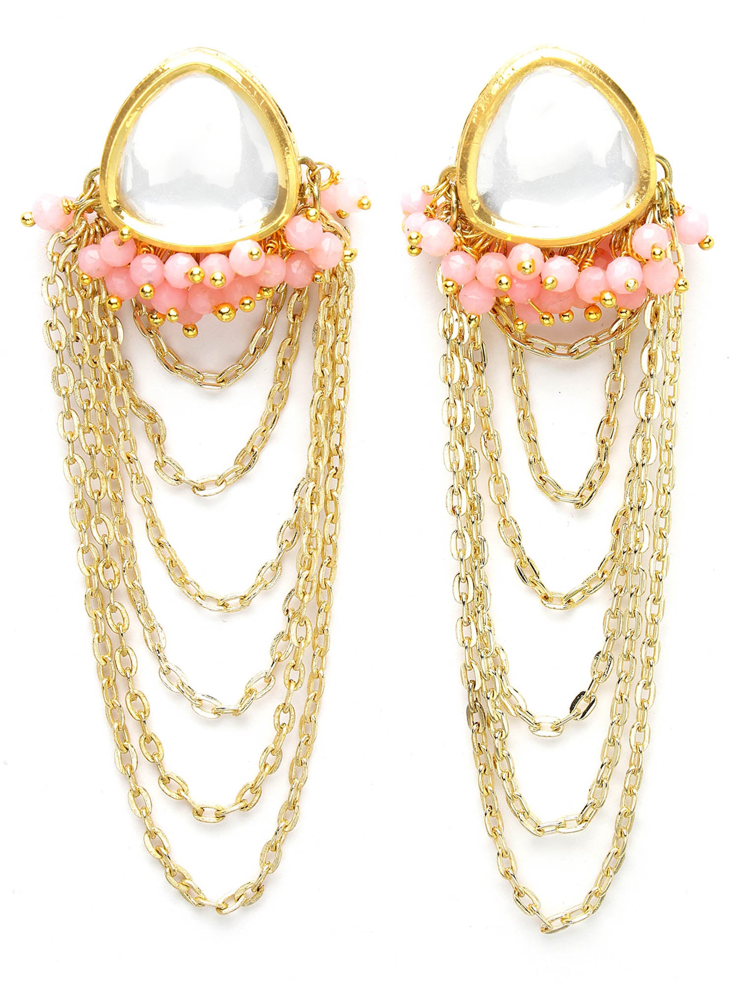 Karatcart Pink Crystal Polki Kundan Chain Drop Earrings for Women