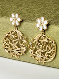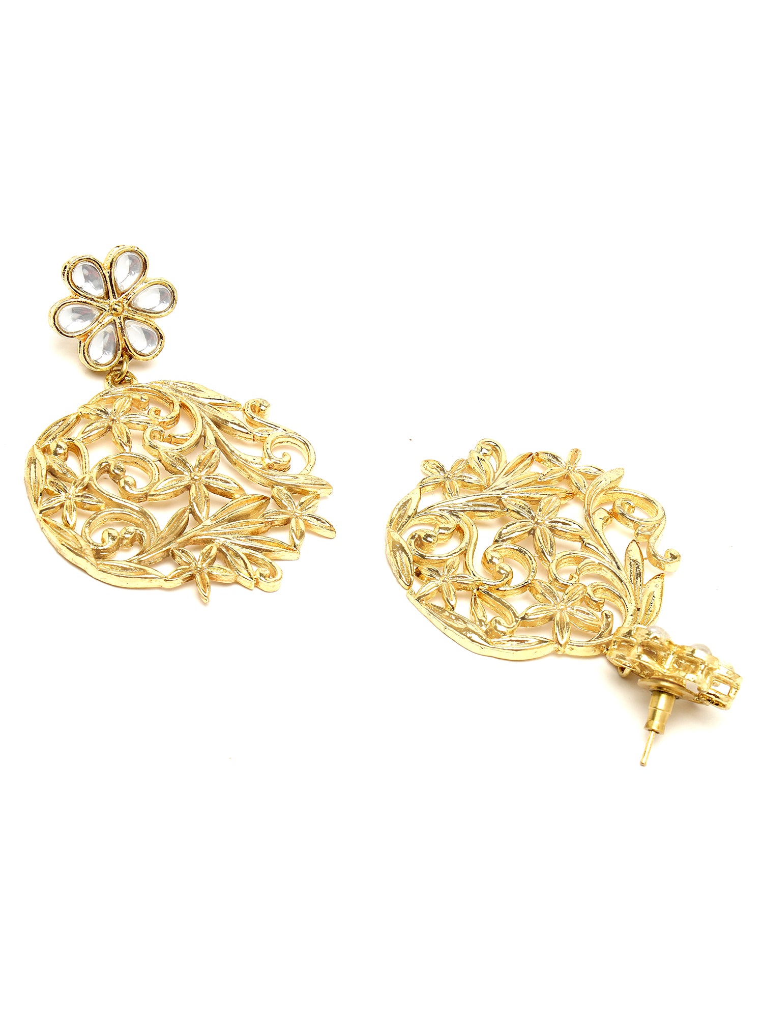 Karatcart Floral Design Golden Kundan Dangler Earrings for Women