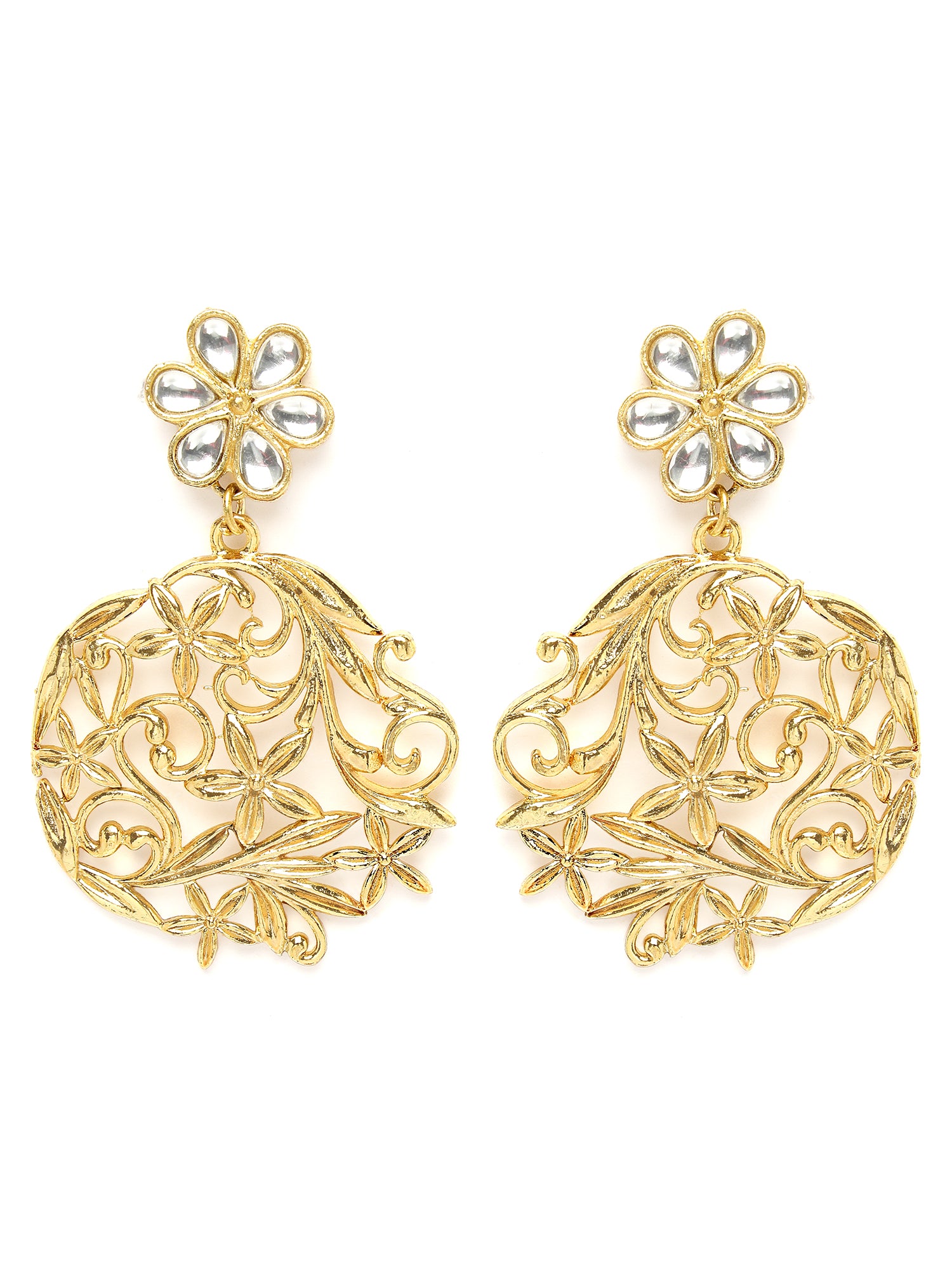 - Karatcart Floral Design Golden Kundan Dangler Earrings for Women. Our products are designed with high-quality material and these products are enhanced with plating that are skin-friendly & with love to reach your heart.
