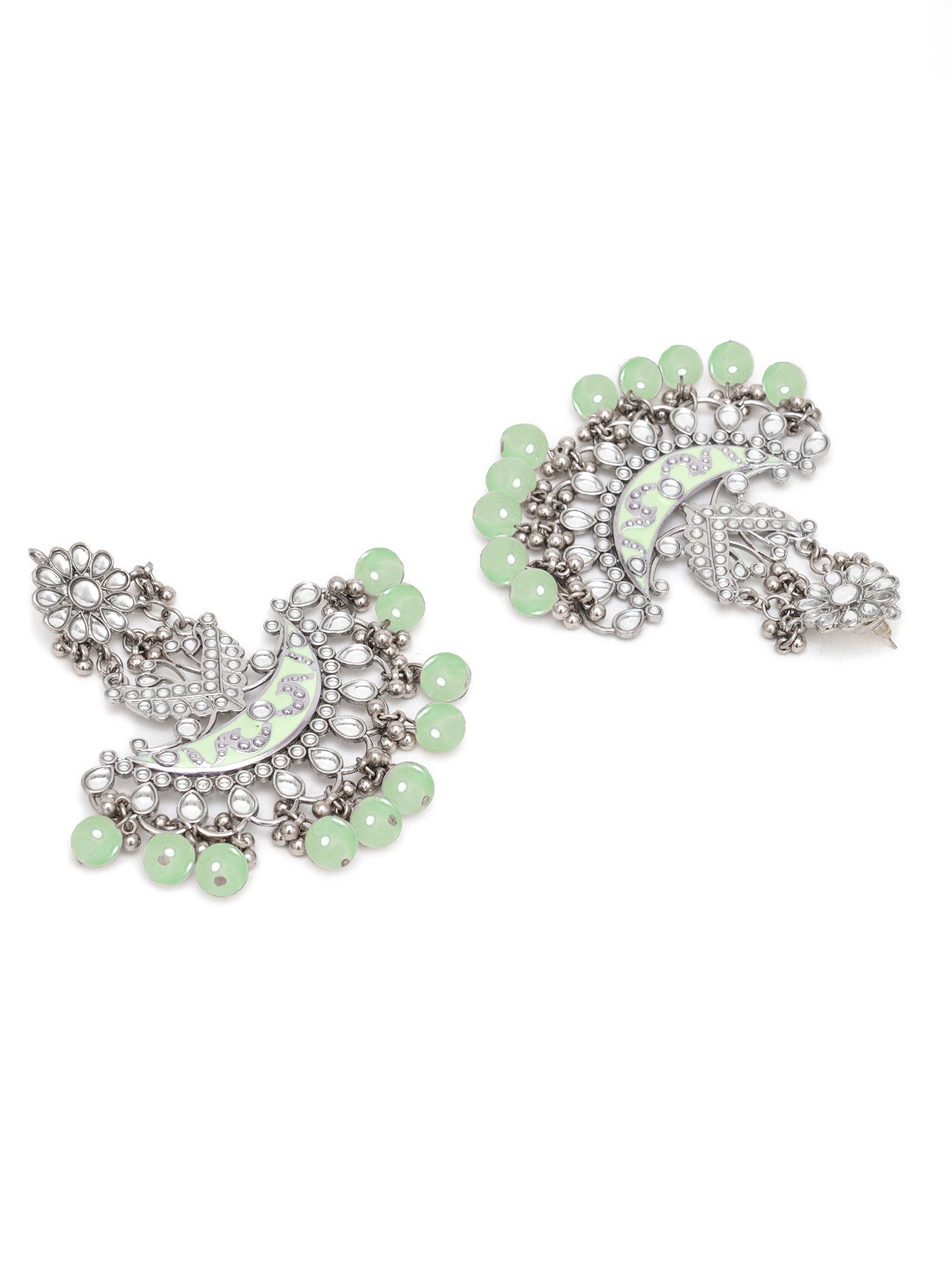 Karatcart Oxidised Silver Light Green Meena Kundan Dangler Earrings for Women