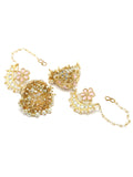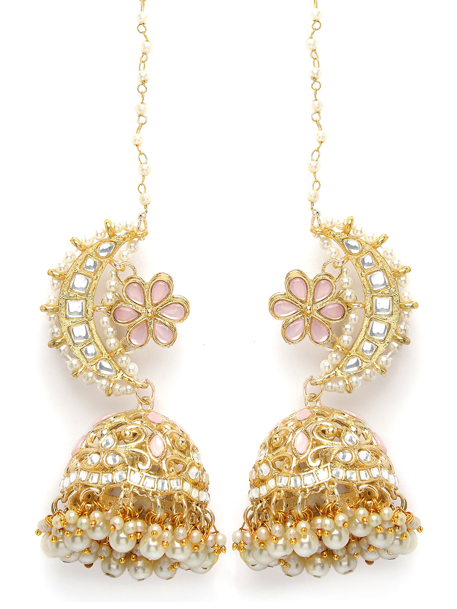 Karatcart Gold Plated Pink Floral Kundan Jhumki Kaanchain Earrings for Women