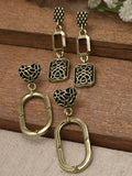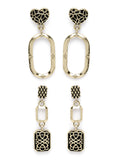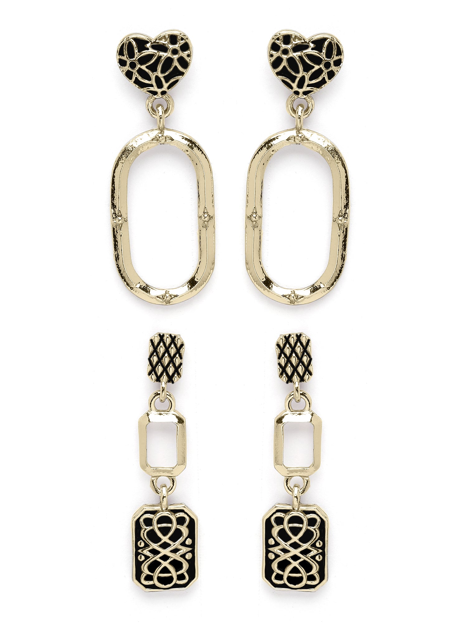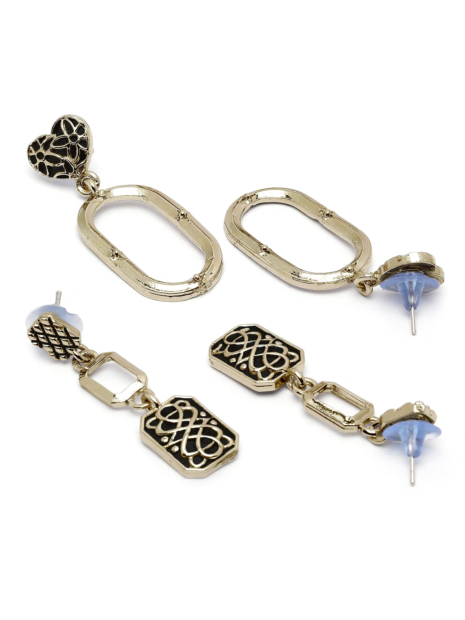 Karatcart Set of 2 Antique Gold Plated Black Meena Kundan Drop Earrings for Women