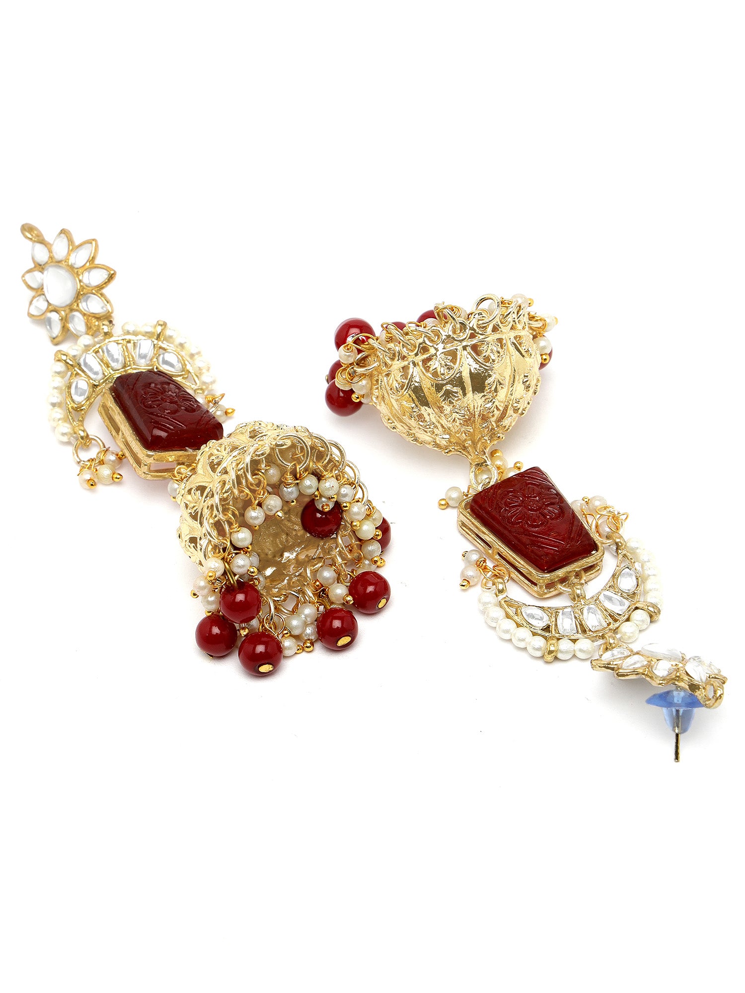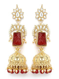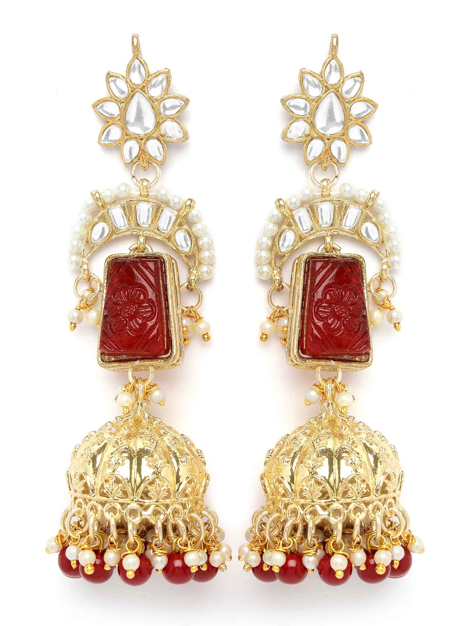 Karatcart Gold Plated Red Carved Stone Kundan Jhumki Drop Earrings for Women