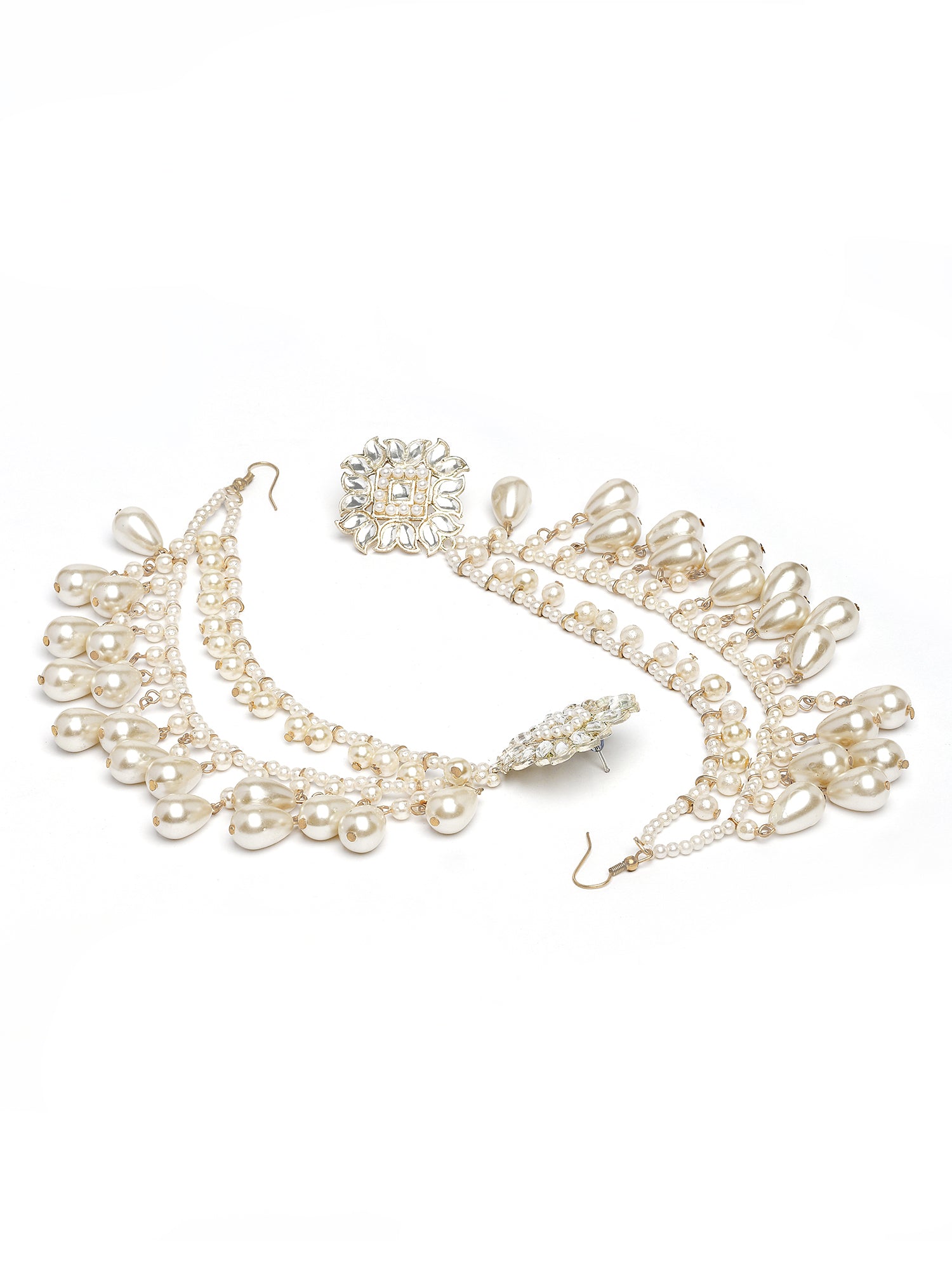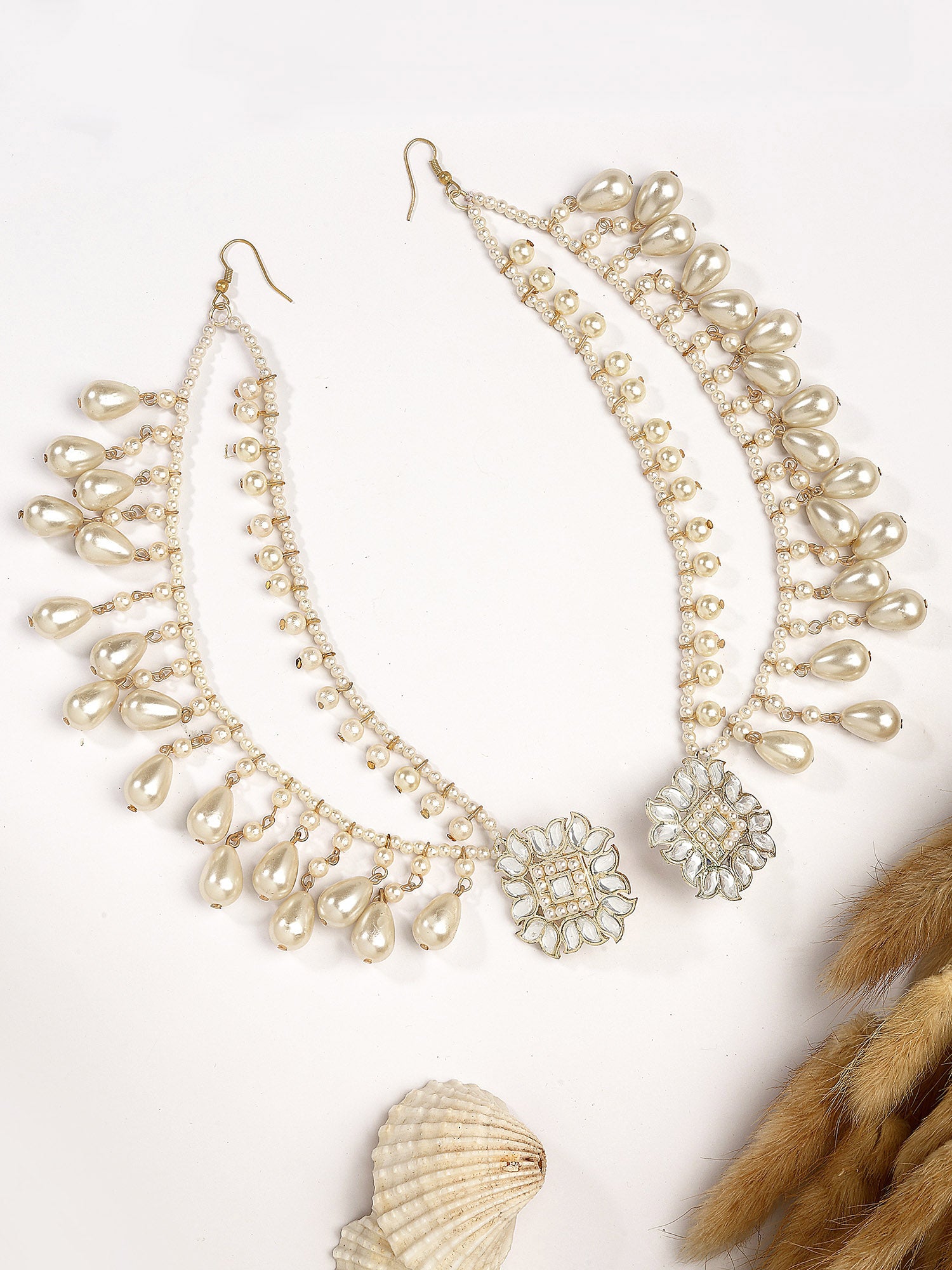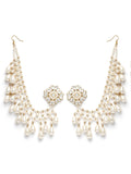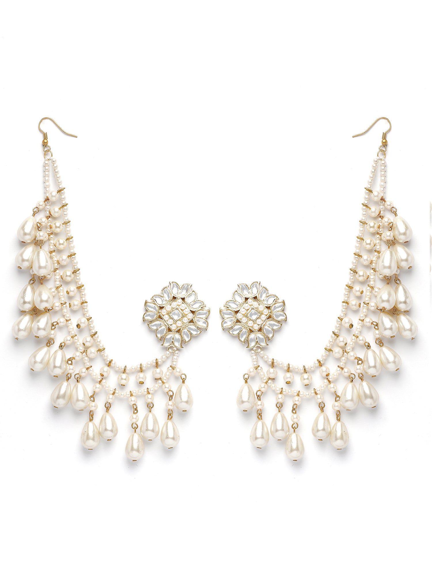 Karatcart Traditional Gold-Plated Kundan and Drop Pearl Kaanchain Earrings for Women