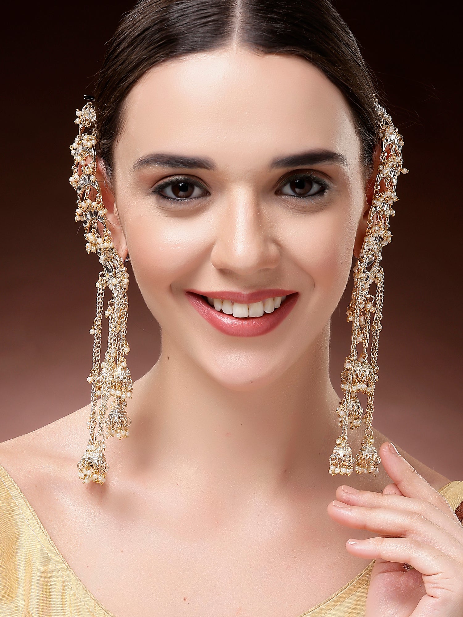 Karatcart Traditional Gold-Plated Kundan Kaanchain Earrings with Hanging Jhumki for Women