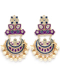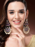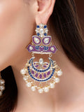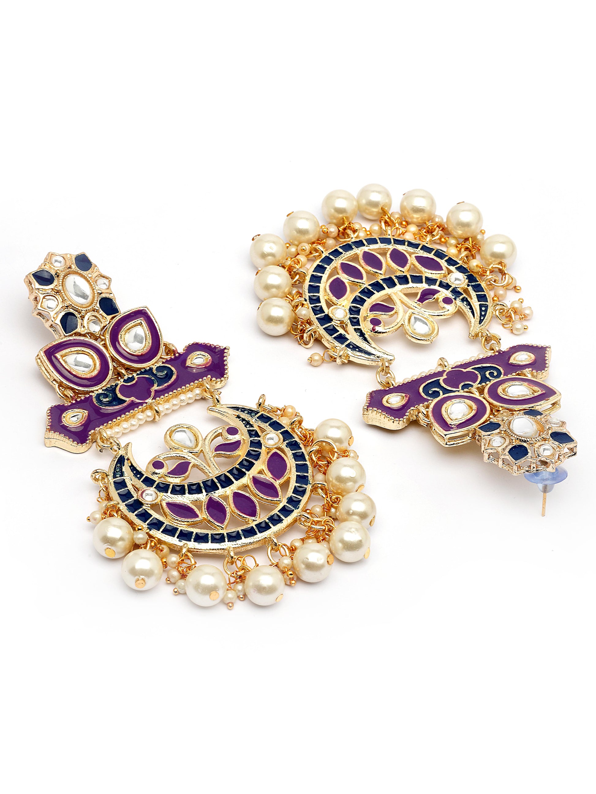 Karatcart Designer Gold-Plated Purple & Blue Meenakari Dangler Earrings with Pearls