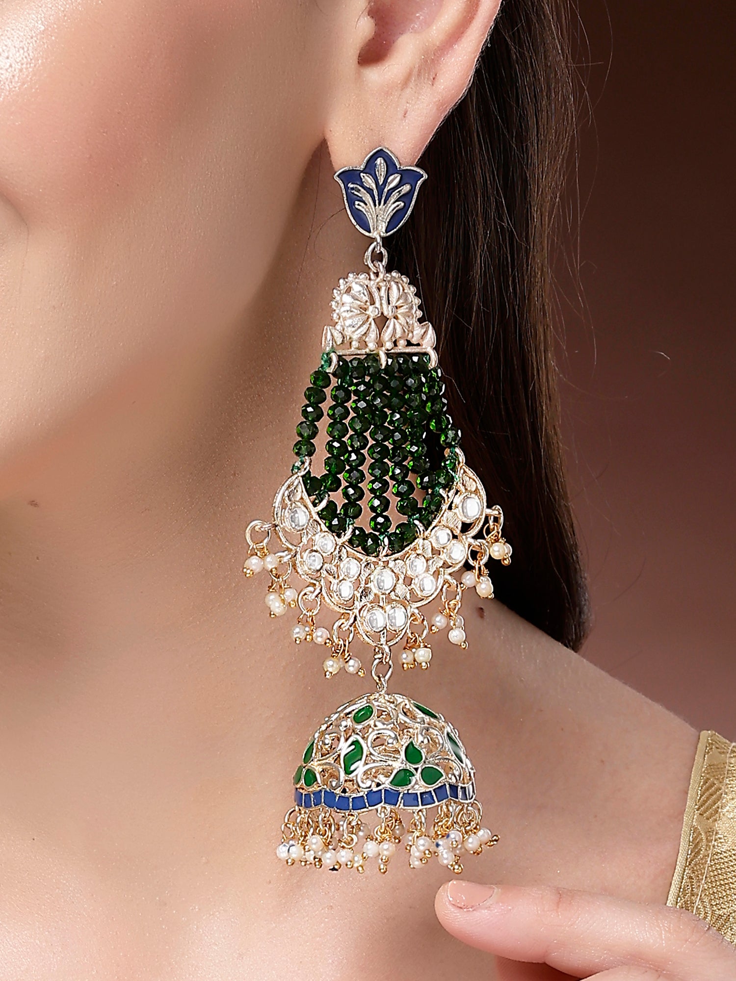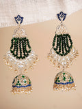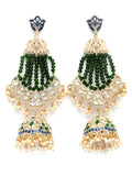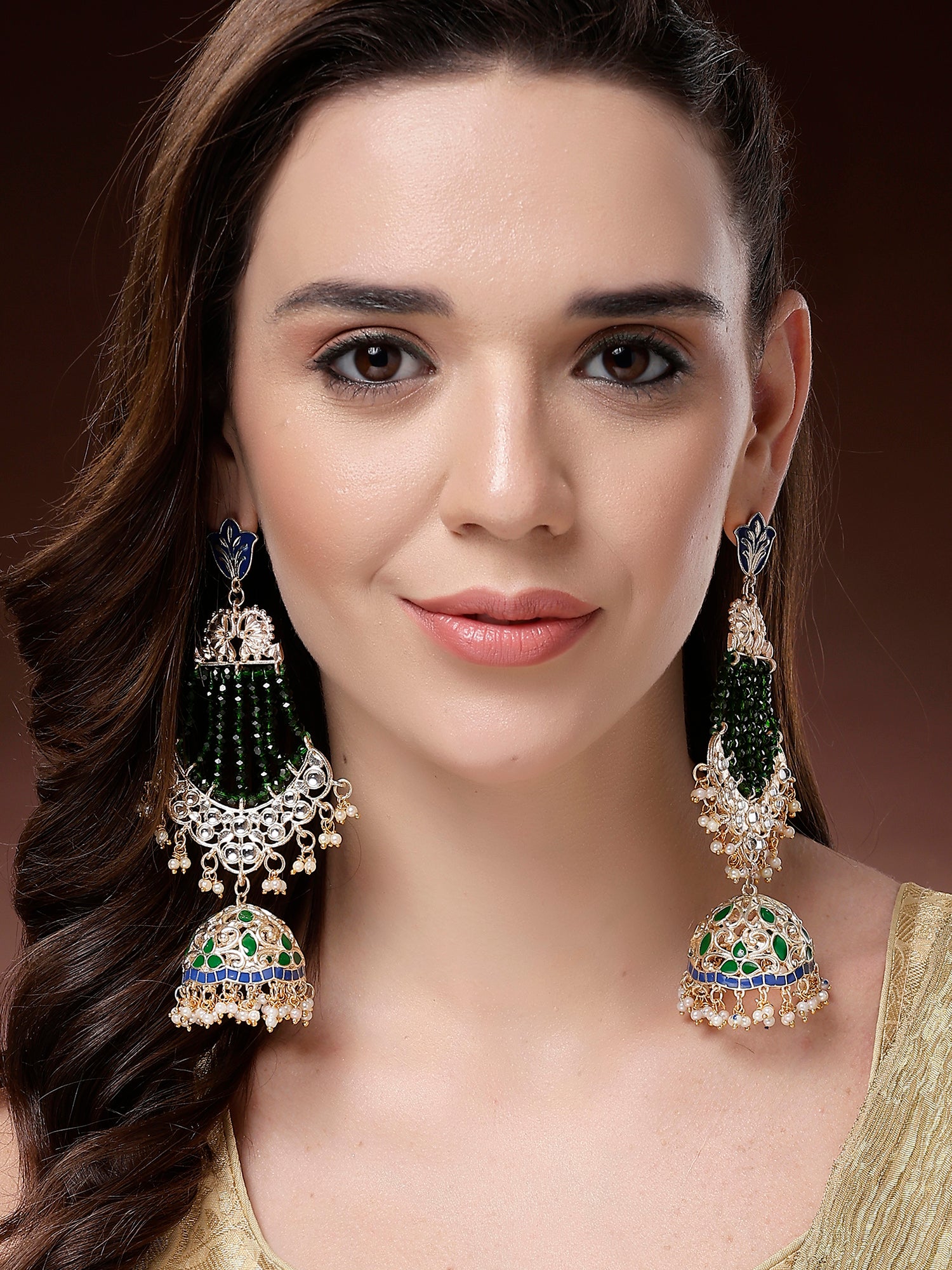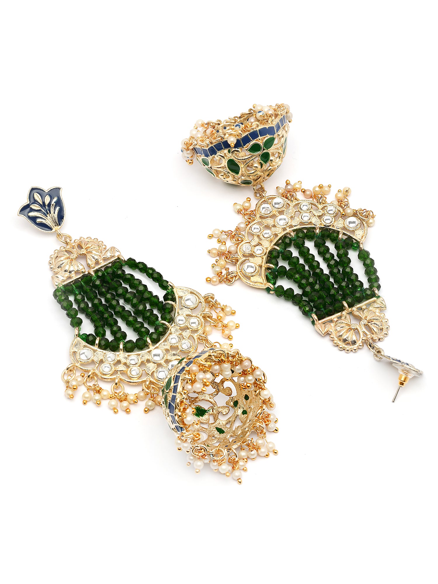 Karatcart Elegant Gold Plated Green Crystal Kundan Meenakari Dangler Jhumki Earrings for Women
