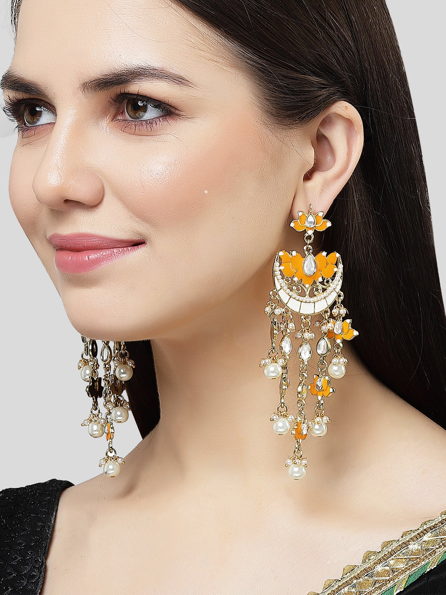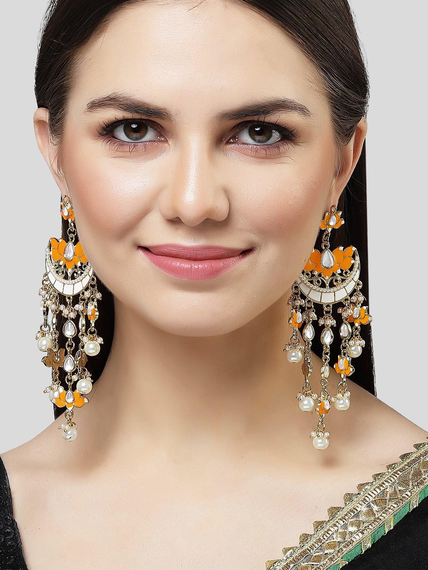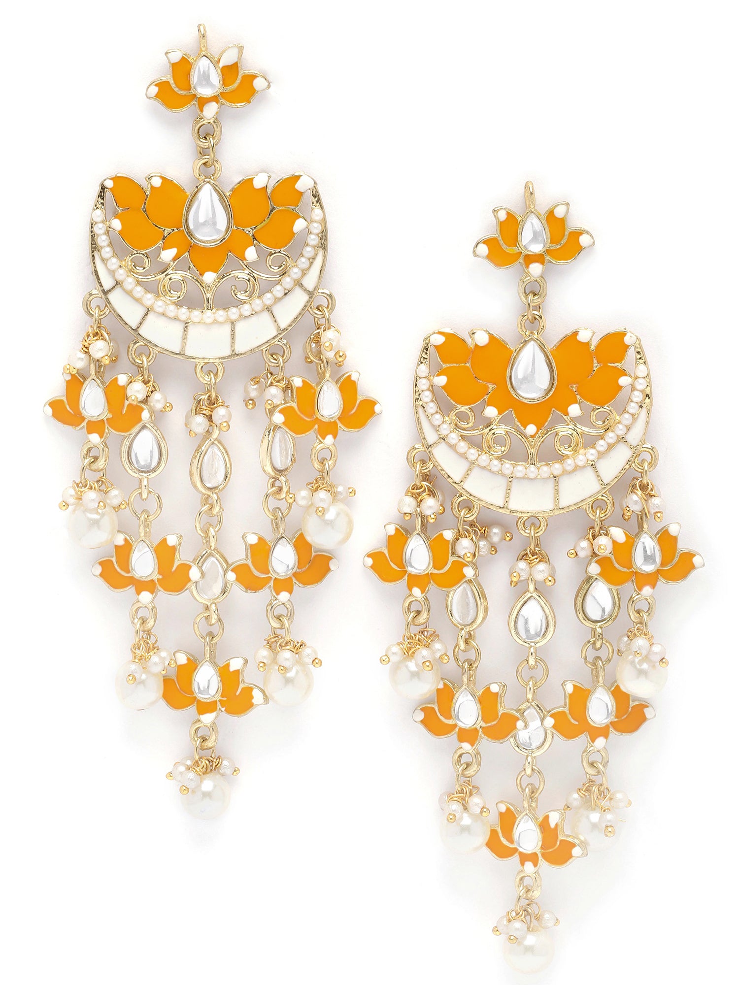 Karatcart Gold Plated Orange Meena Lotus Design Kundan Dangler Earring for Women