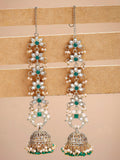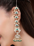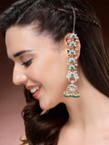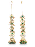 Karatcart Ethnic Gold-Plated Green Crystal Kundan Long Kaanchain Jhumka Earrings for Women